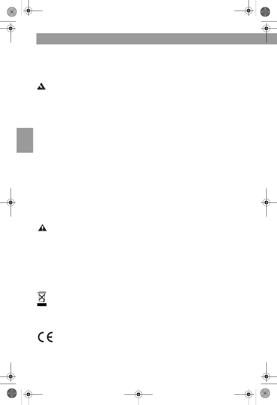 • The battery used in this device may present a risk of fire or chemical burn if mistreated. Do not disassemble, heat