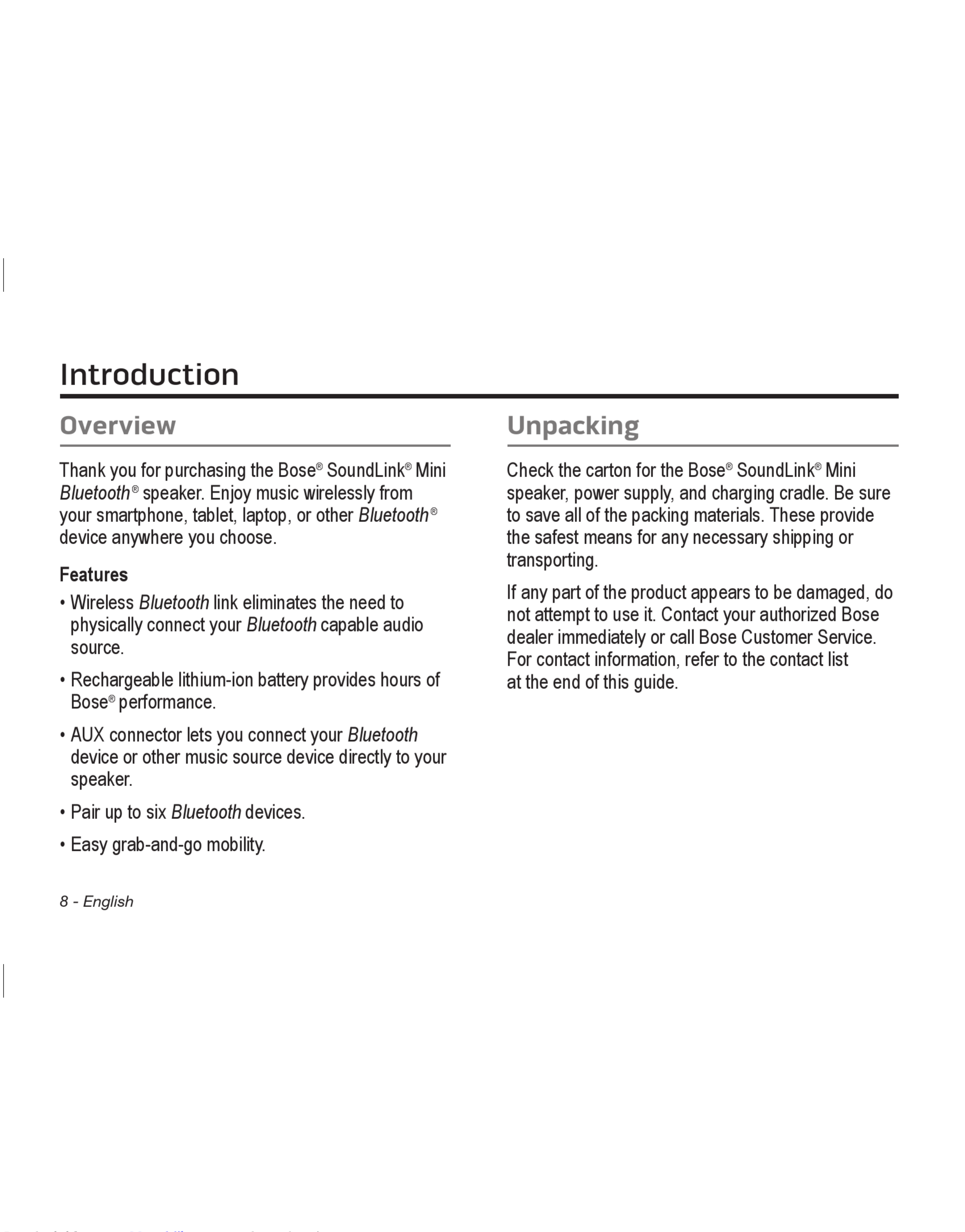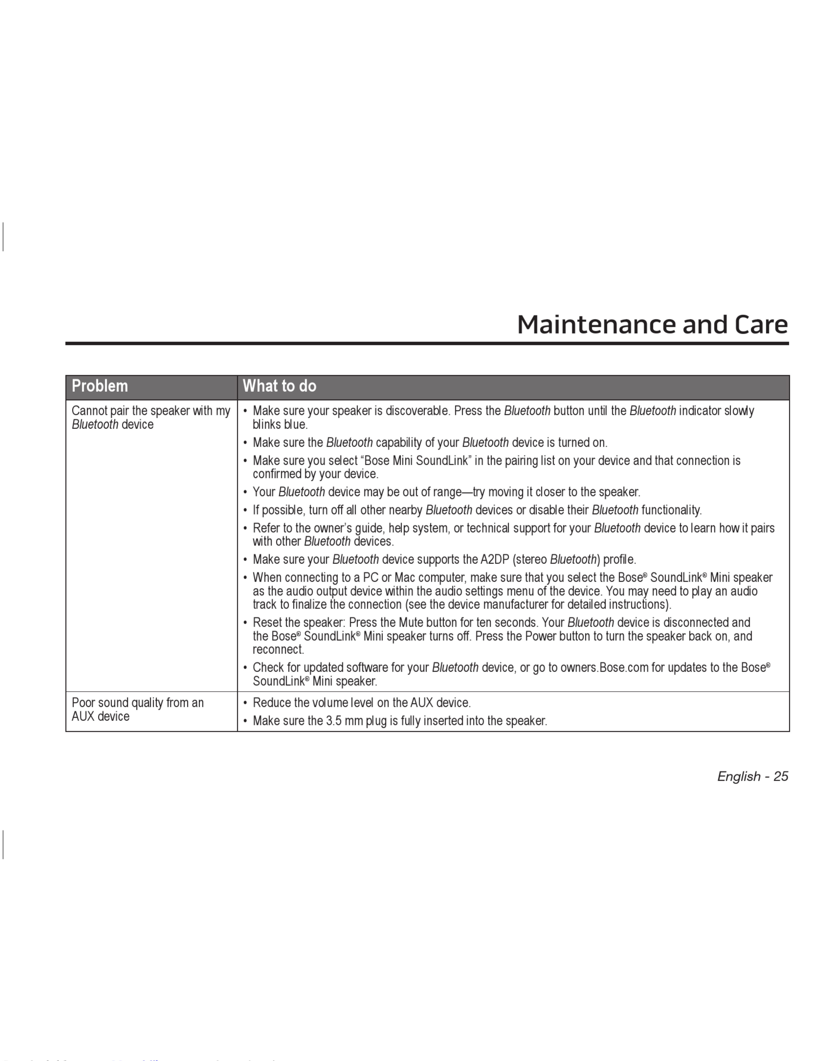 User Manual: Bose Bose-Soundlink-Mini-Bluetooth-Speaker-Owners-Manual-1003080