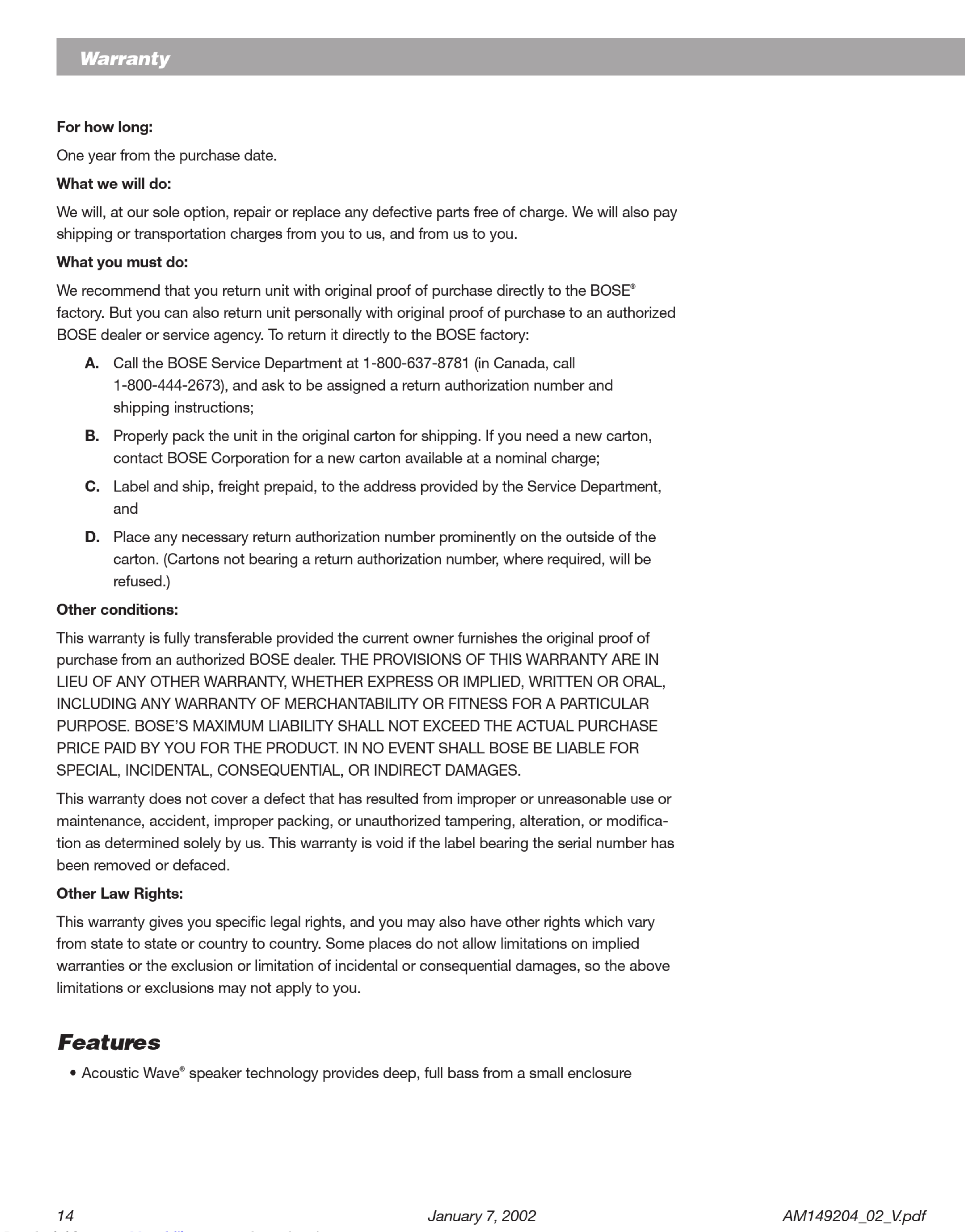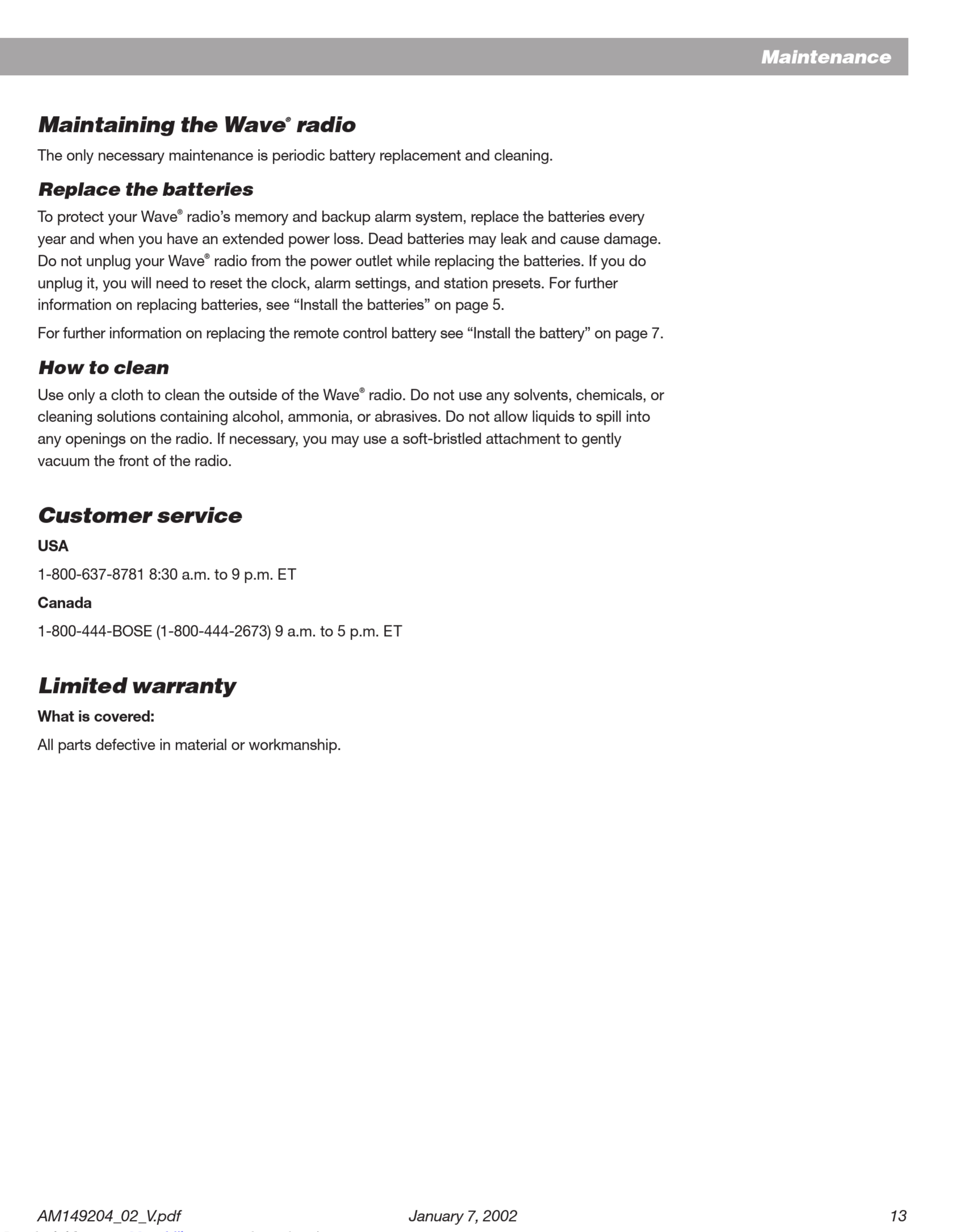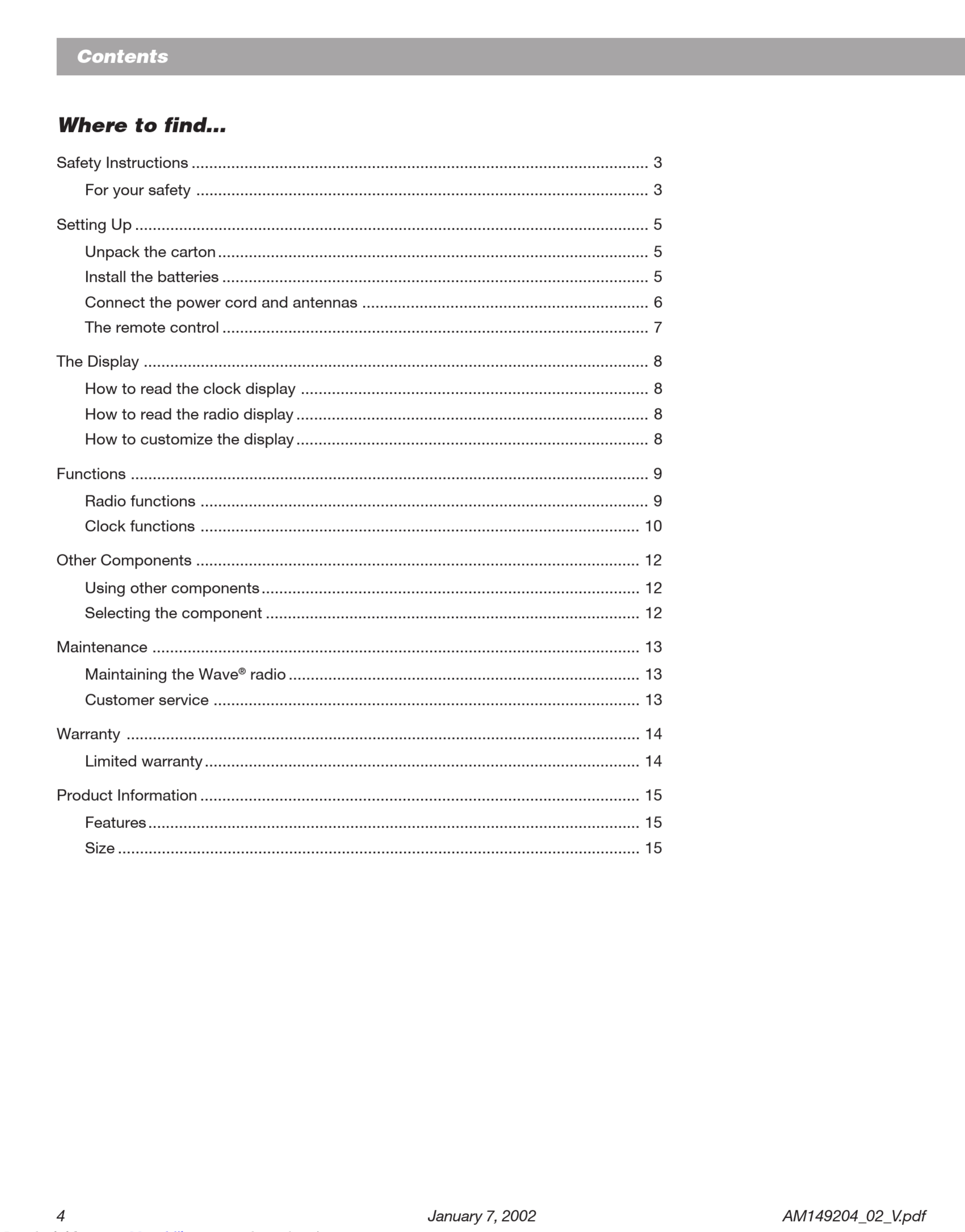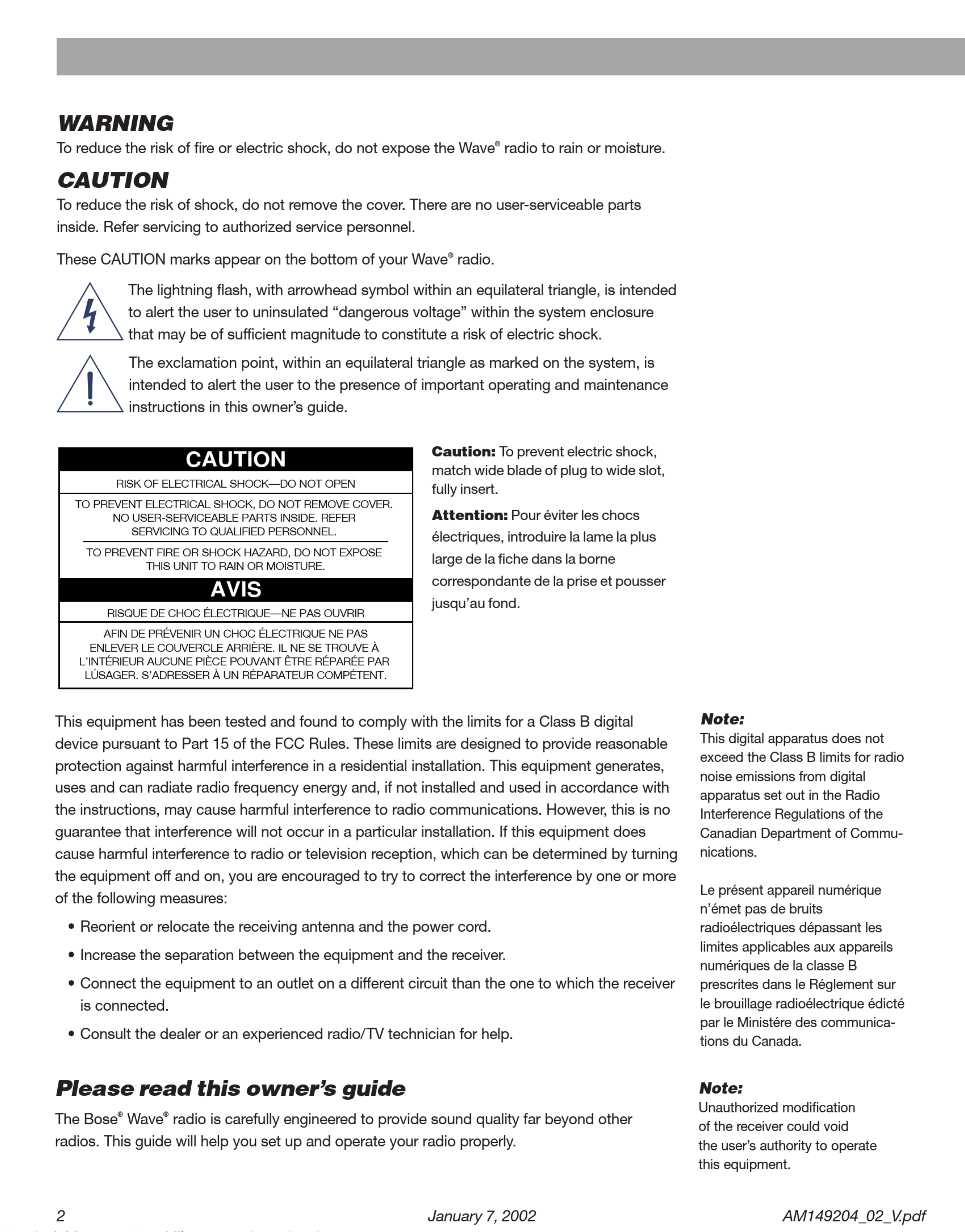 User Manual: Bose Bose-Wave-Radio-Owners-Manual-1003109