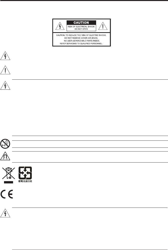 • To reduce the risk of re or electrical shock, do not expose the product to rain or moisture.