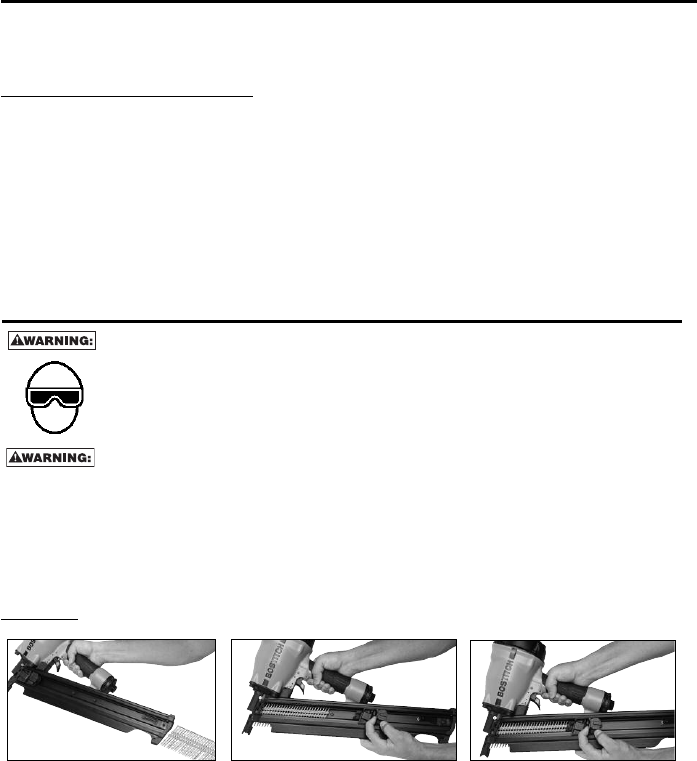 tool. Eye protection is required to guard against flying fasteners and debris, which could
