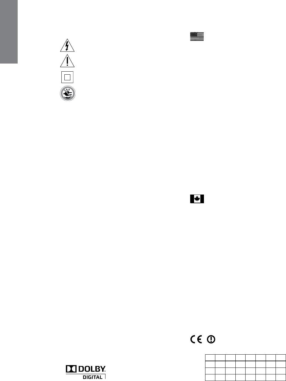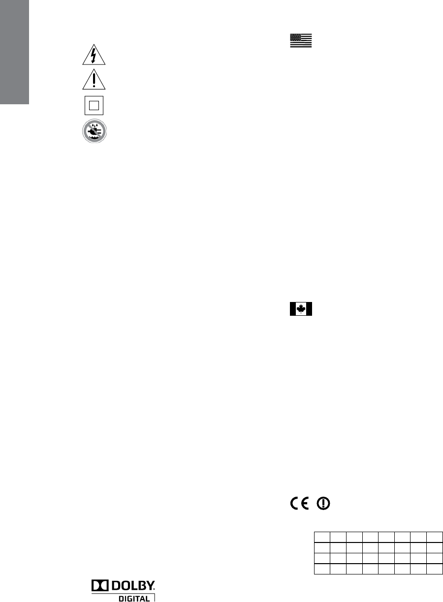 Specications are subject to change without notice. Dolby is a registered trademark of Dolby Laboratories. iPod and iTunes