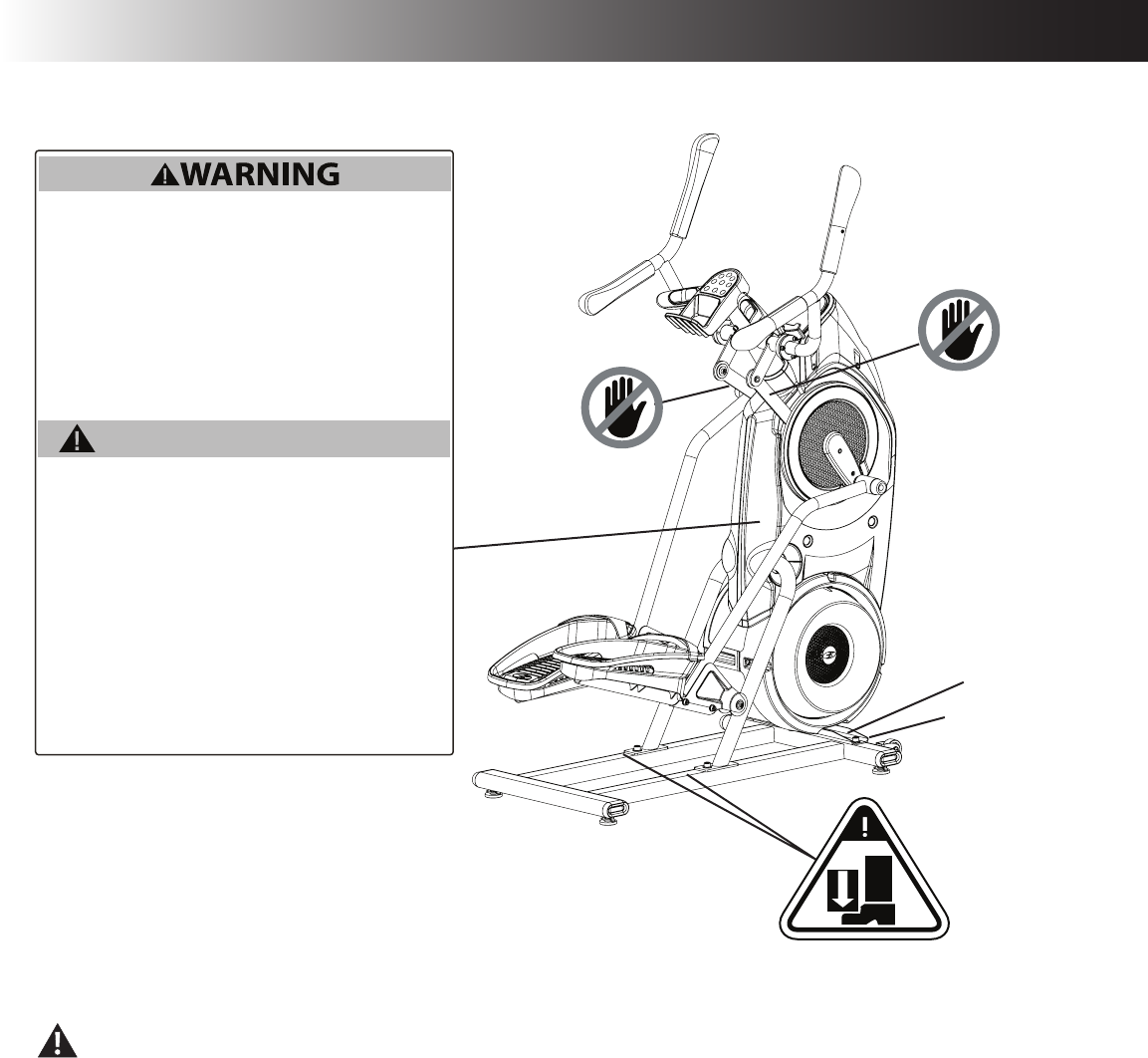 • If replacement parts are necessary, use only genuine Nautilus replacement parts and hardware. Failure to use genuine replacement parts can