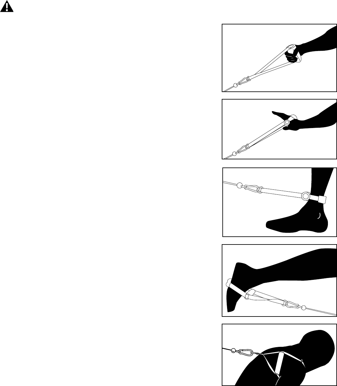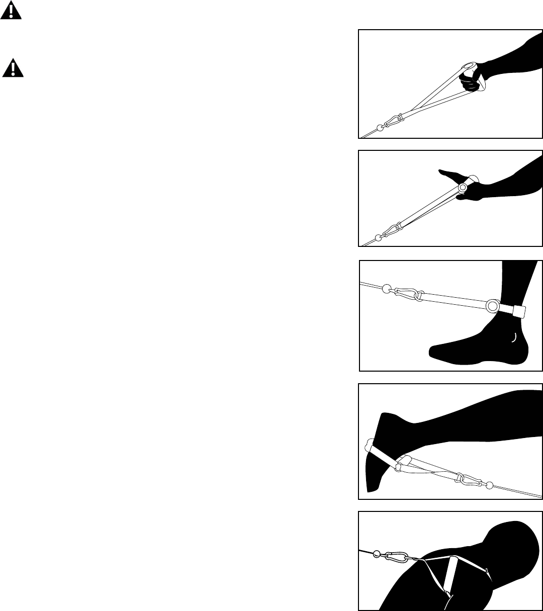 • Before each use, examine this machine for loose parts or signs of wear. Monitor all cables, pulleys and their