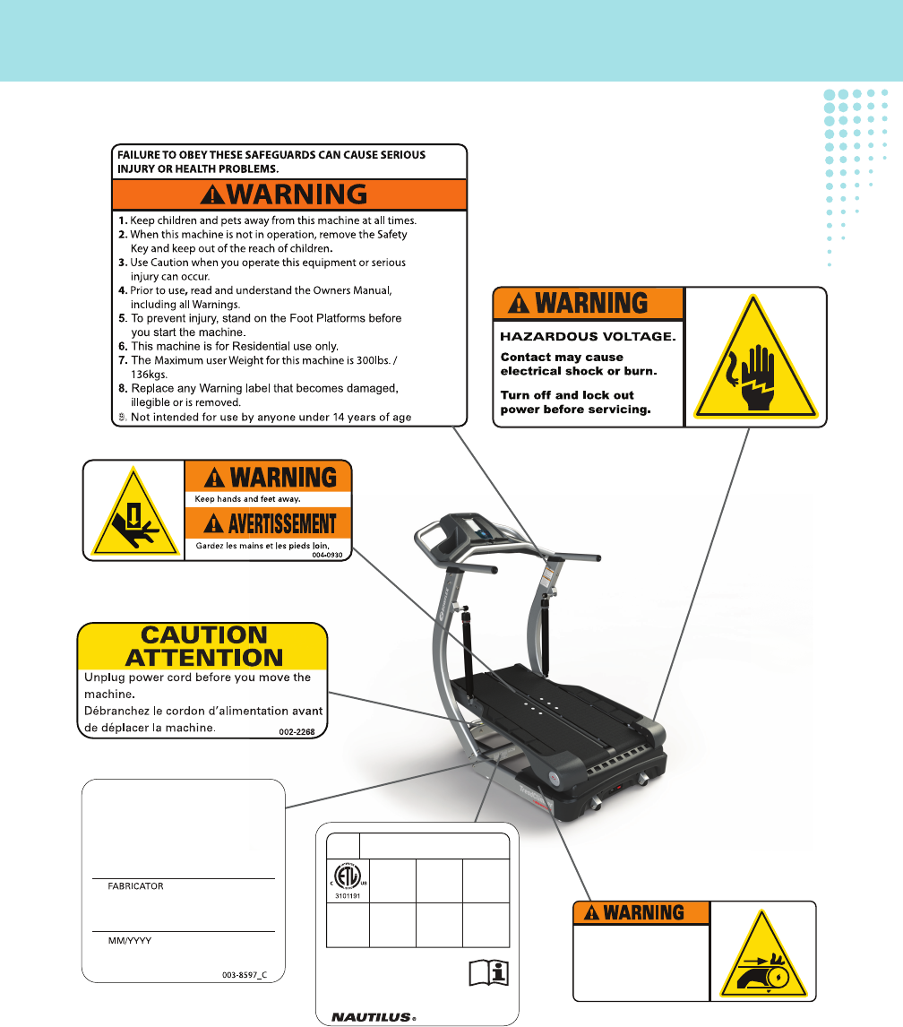 unreadable or dislodged, contact Nautilus® Customer Service for replacement stickers.