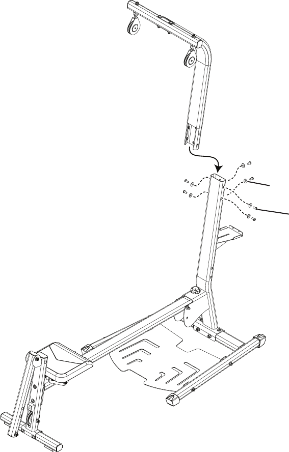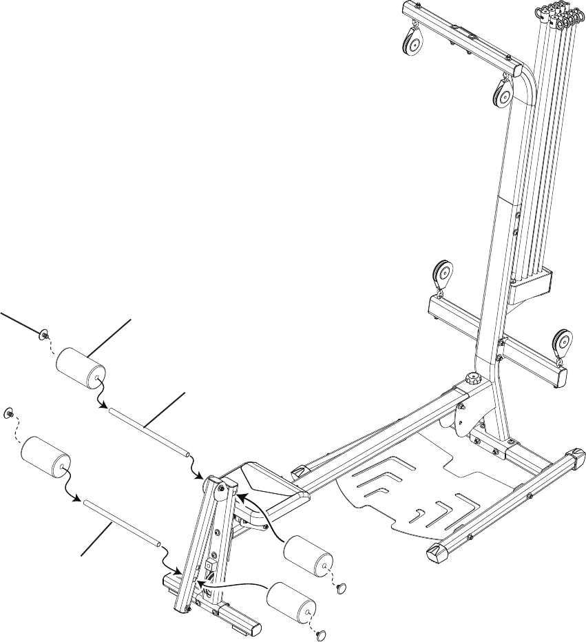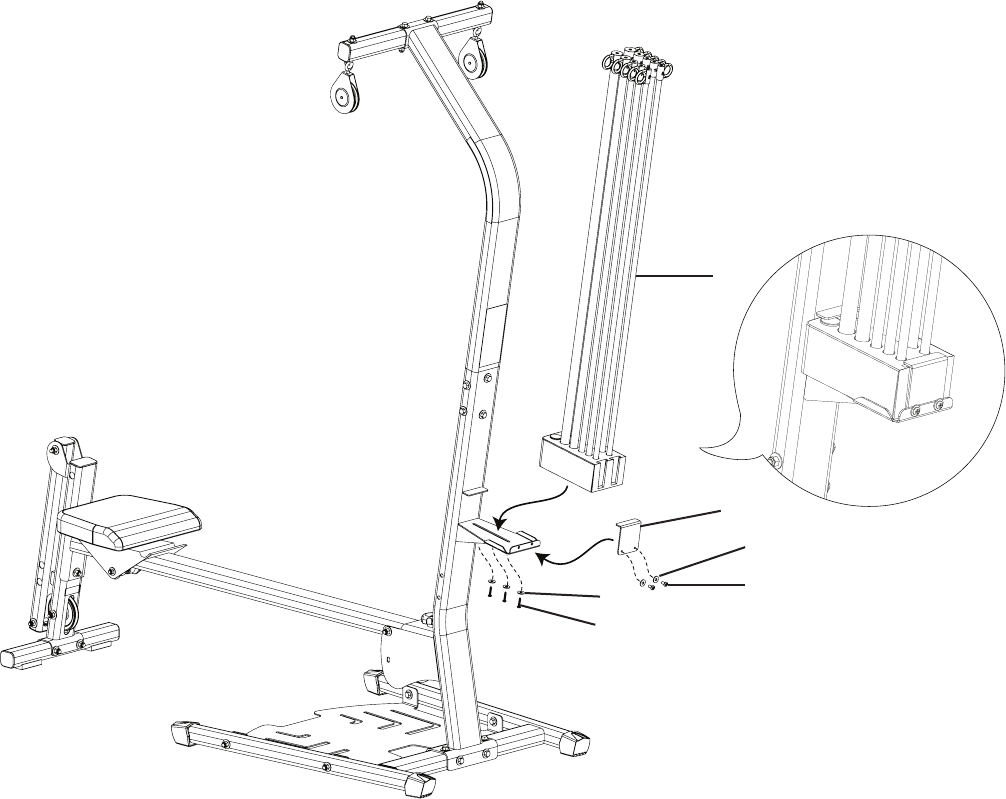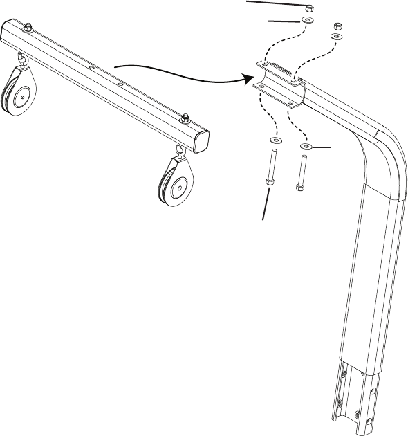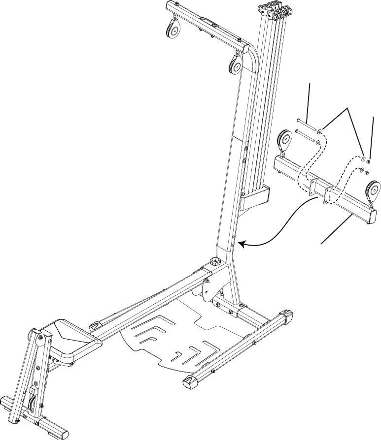 7-1 Align the Lat Tower Cross Bar bolt holes with the bolt holes in the Upper Lat Tower bracket.