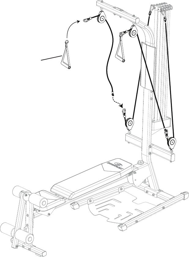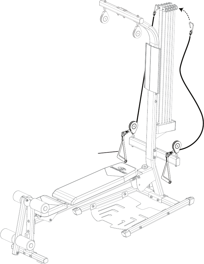 C-2 Attach the Snap Hooks from the Chest Bar Pulleys to the Leg Extension Cables.