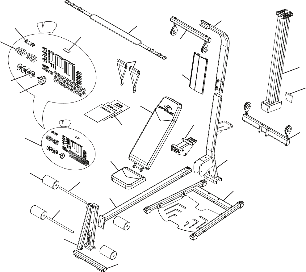 NOTICE: Leave all of the cables wrapped and bagged until the Bowflex® home gym is completely assembled.