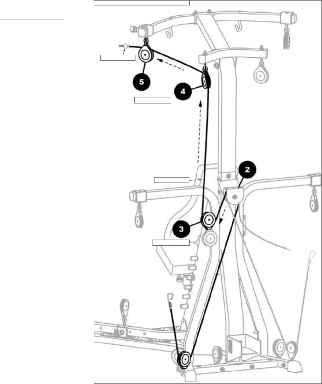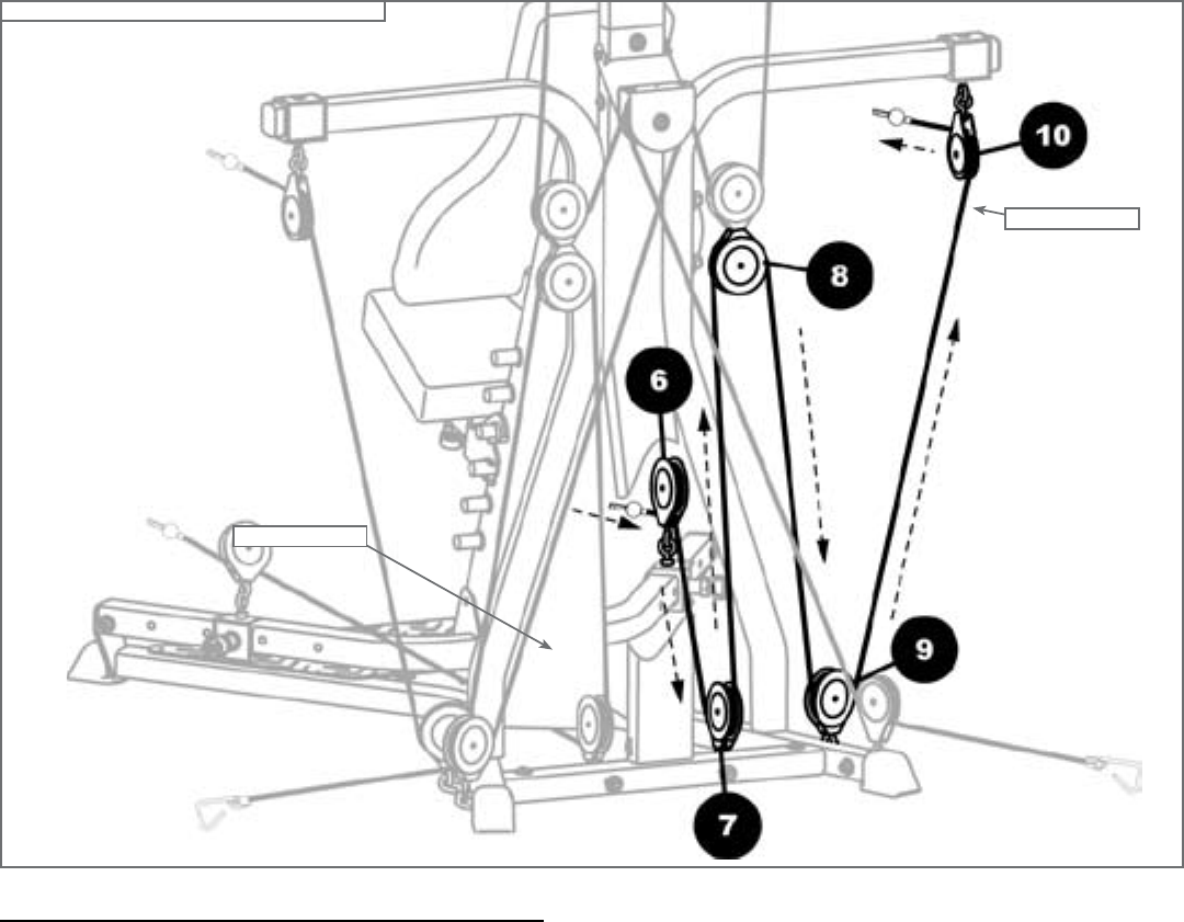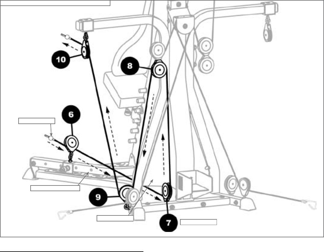 Continue to guide the Cable down through the Inner Right Frame Rail Pulley (9), up through the Right Pulley Arm Pulley (10),