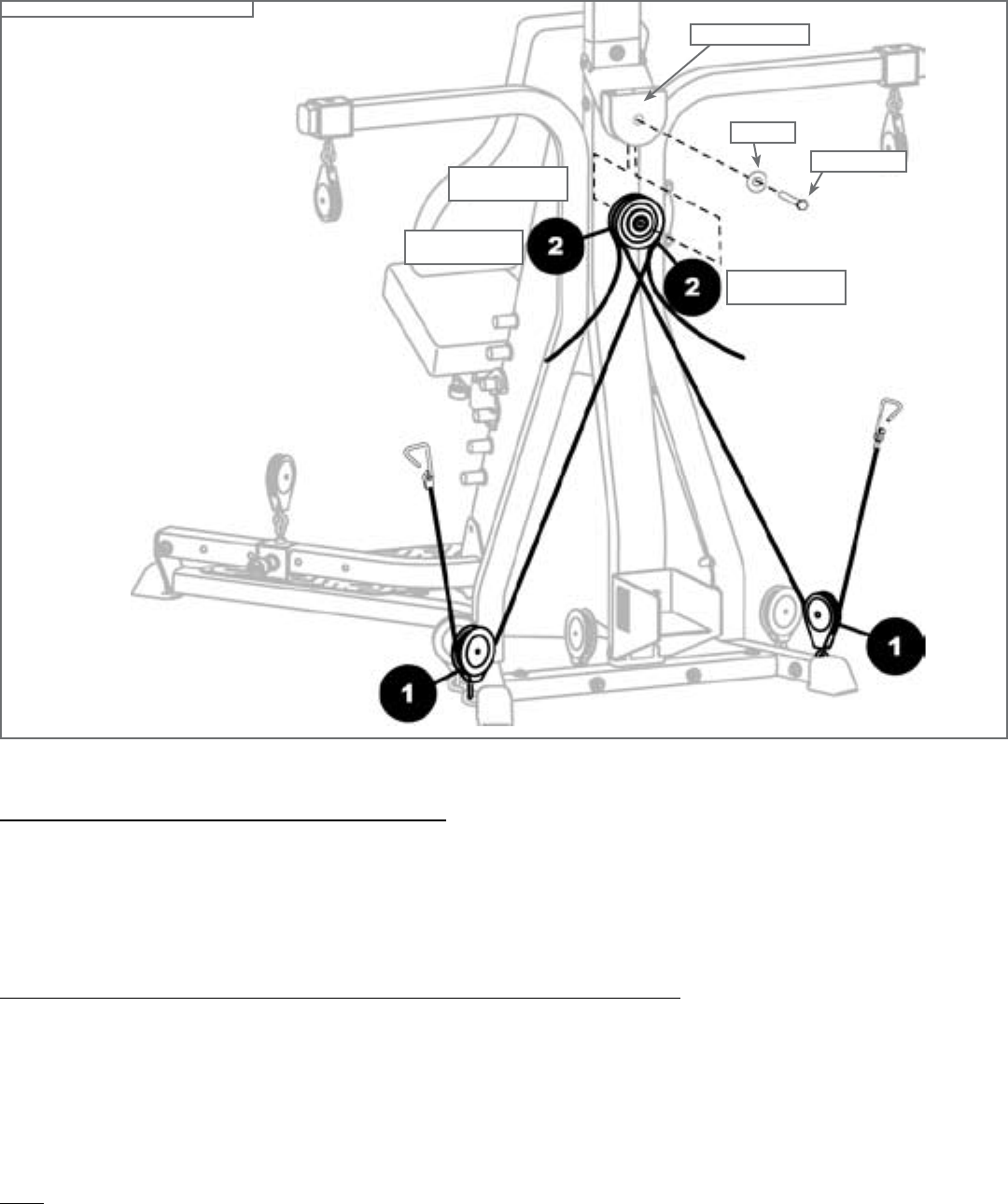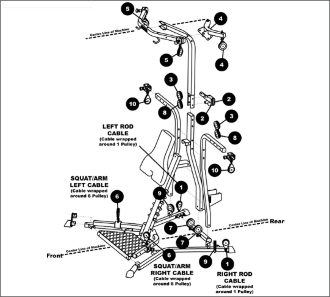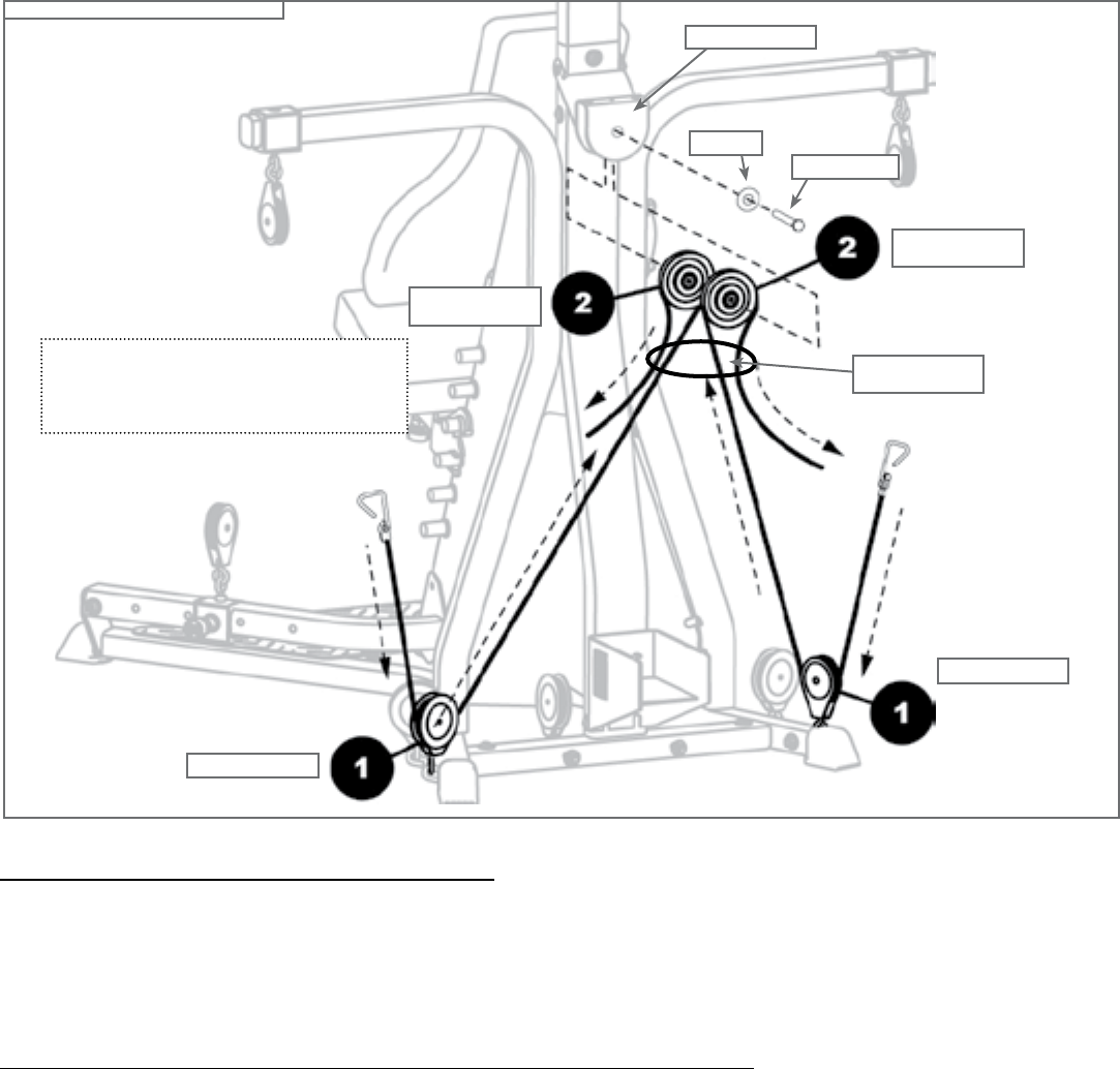 Continue to guide the Cable down through the Inner Right Frame Rail Pulley (9), up through the Right Pulley Arm Pulley (10),