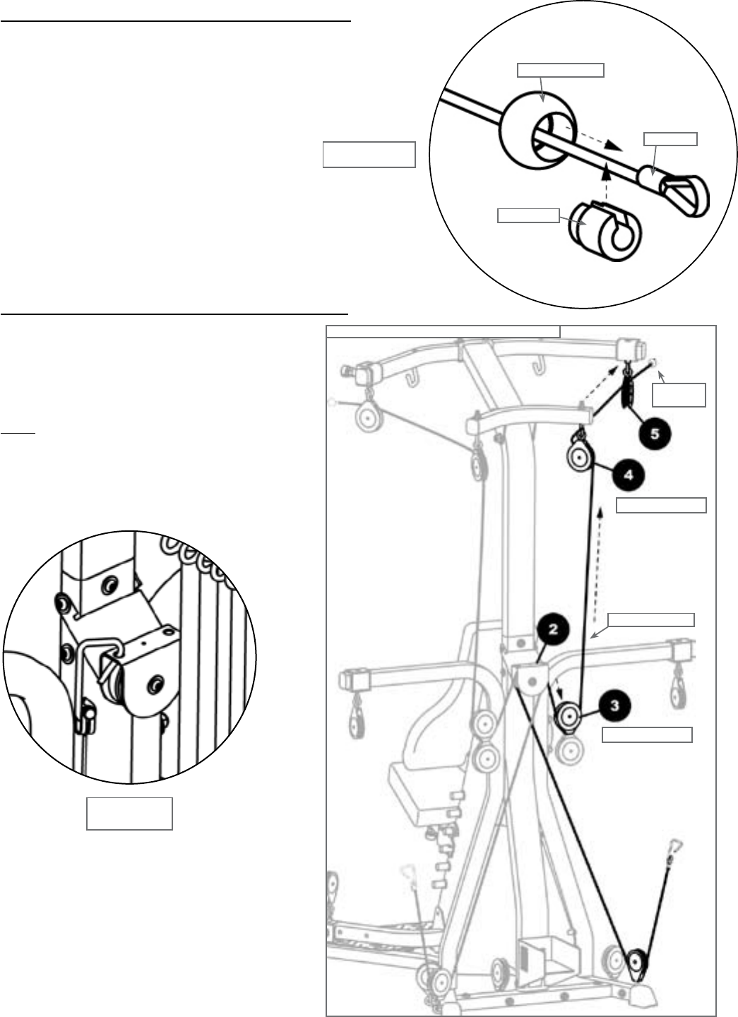 Unwrap the Right Squat Cable from the (6) Pulley and guide the Cable under the Cable Shroud (with the Bowflex®