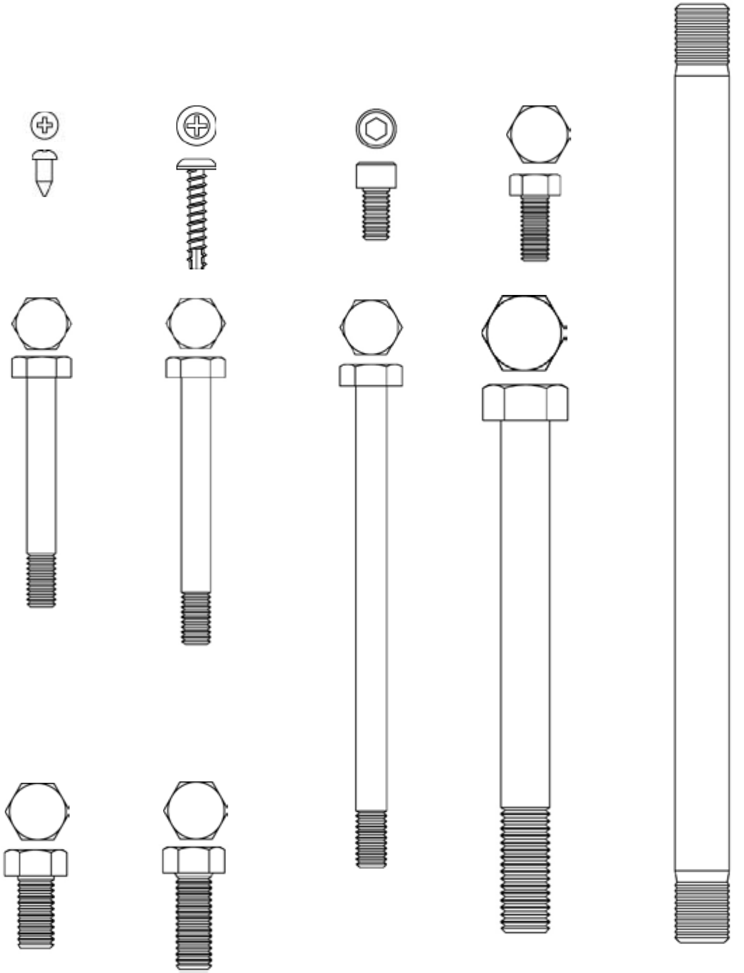 K 2 STUD, 1/2" X 9 1/2" THREADED (Labeled Hex Head Bolt)