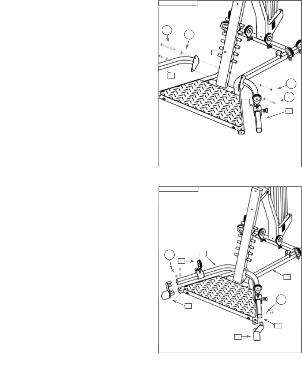 Slide the Right Squat Frame Pulley (6) to the furthest back hole, as indicated in Figure 20.