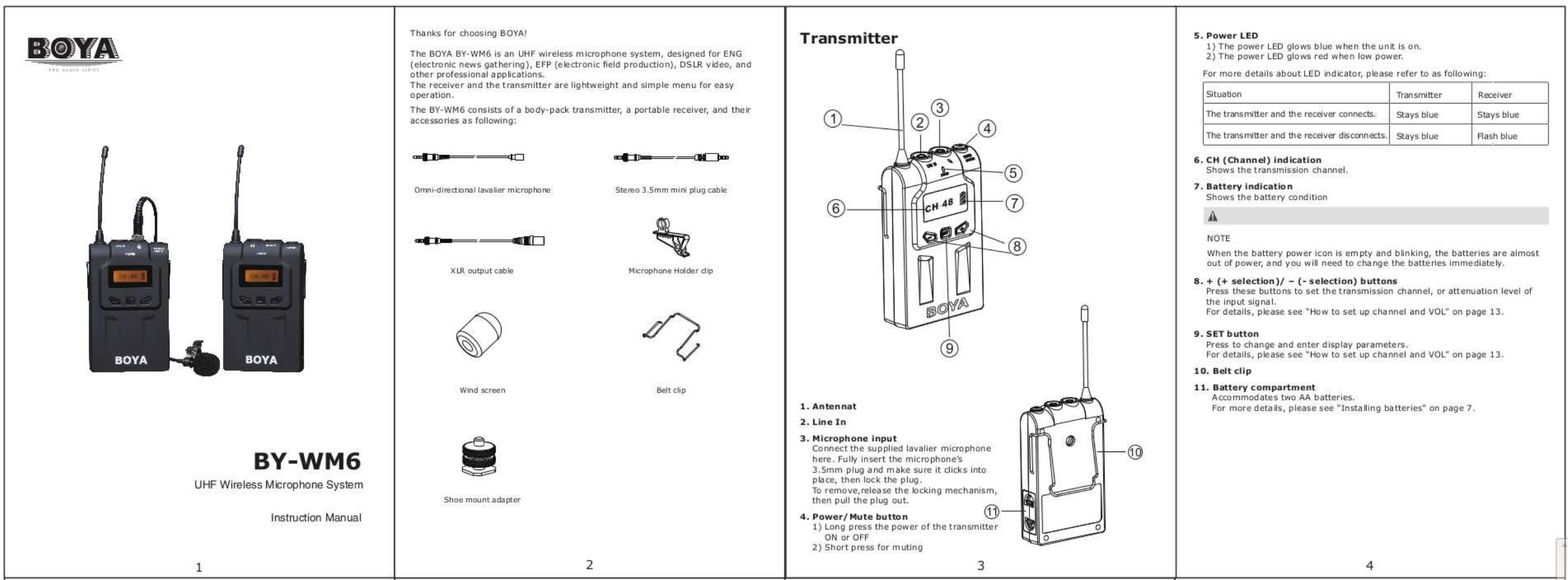 Boya Audio Equipment BY-WM6 BOYA UHF Wireless Microphone System User Manual Manual r1