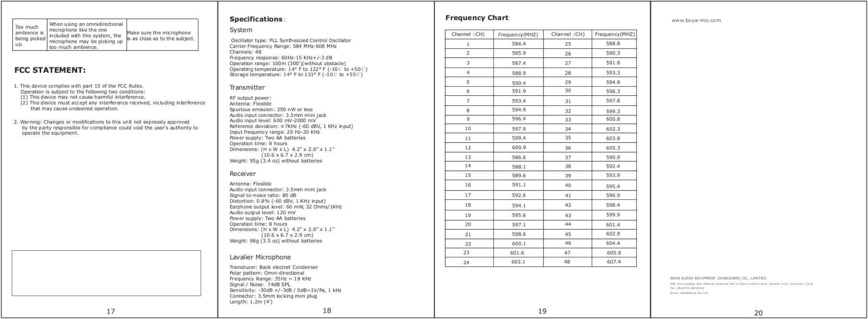 Boya Audio Equipment (Shenzhen) Co., Ltd. BOYA UHF Wireless Microphone System Manual r1