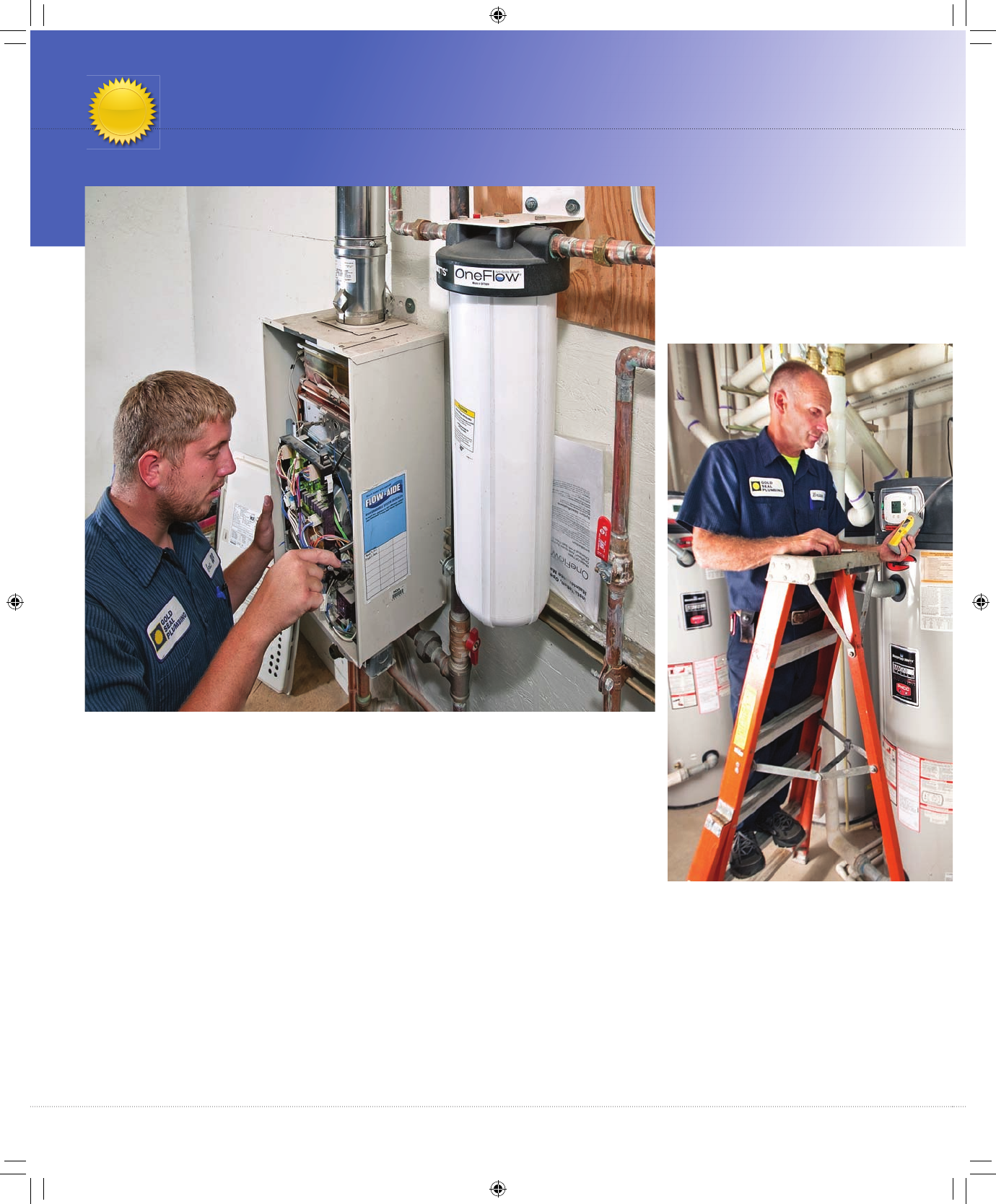 Left: A Gold Seal technician works on an instantaneous water heater. A Watts OneFlow water treatment