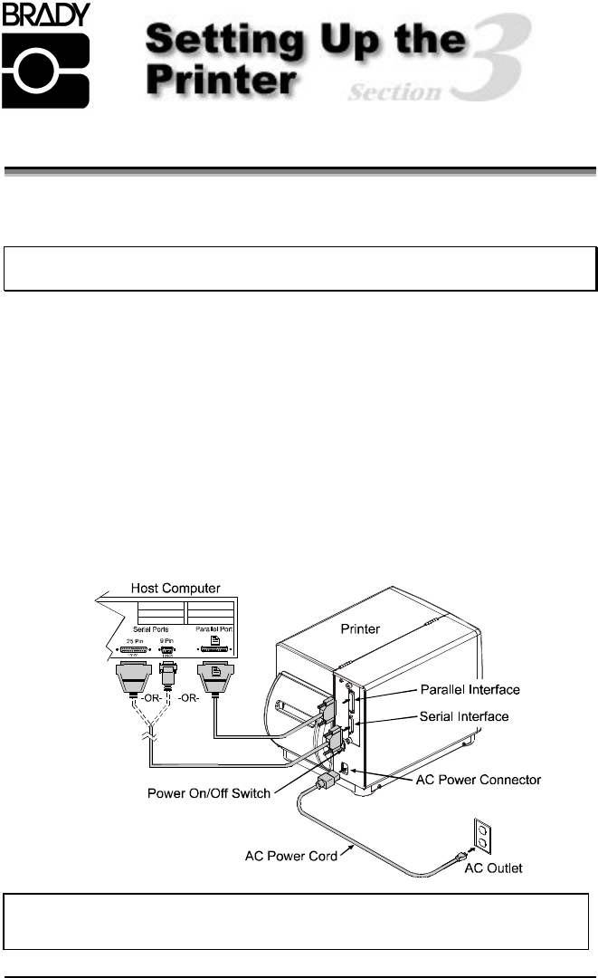 Ø Ensure that the AC power source matches the ratings listed for the printer.