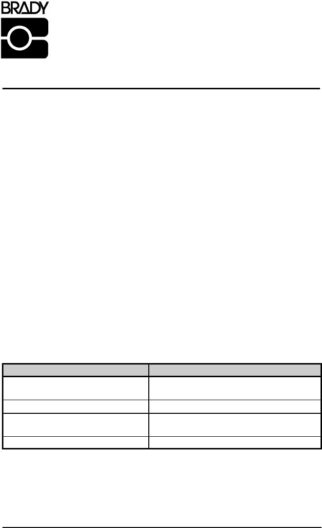 commitment on the part of Brady Worldwide, Inc. No part of this manual may be