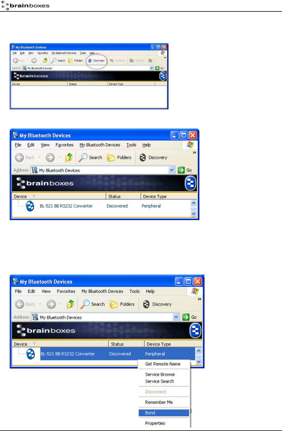 clicking the discovery button. This sets the software to display all the Bluetooth devices it can find “in range”.