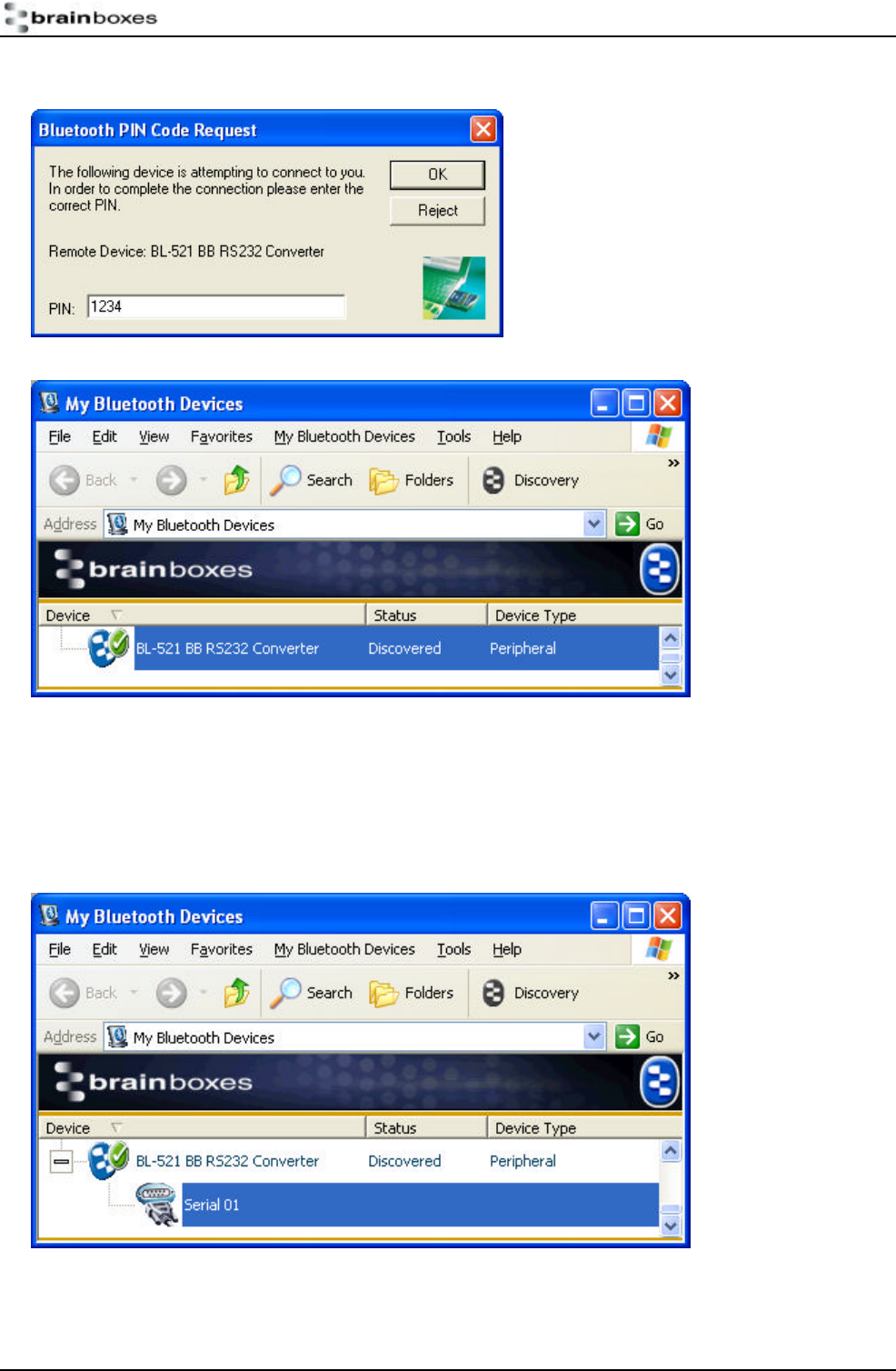 3.2. Connecting to BL-521 from another Brainboxes Bluetooth product..............................................................8