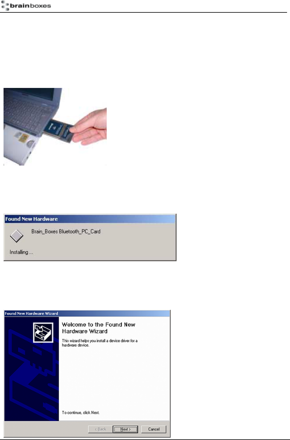 This section will give you all the information that is needed to install your Brain Boxes Bluetooth PC Card