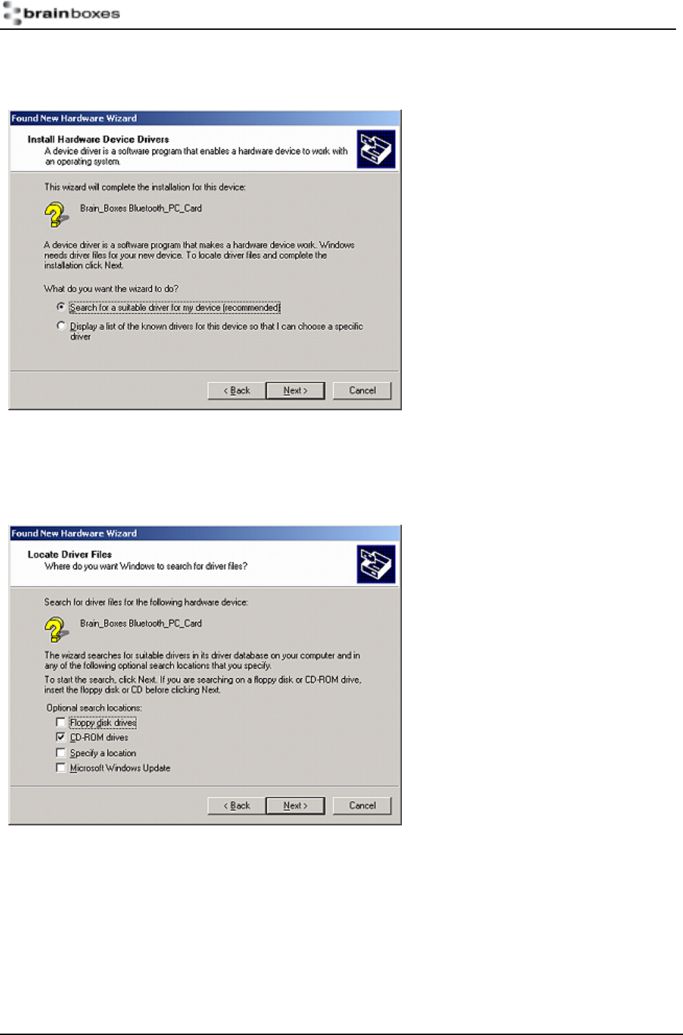 PCMCIA card in Windows2000.doc © Copyright Brain Boxes Limited 2002 Page 4 of