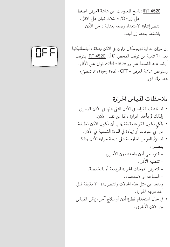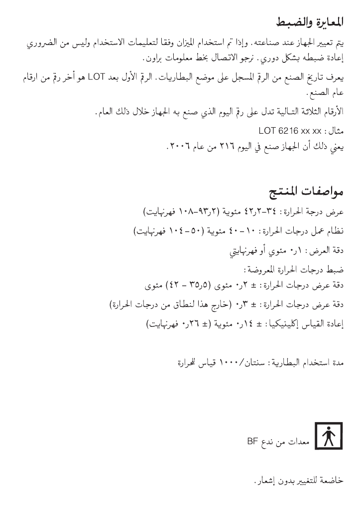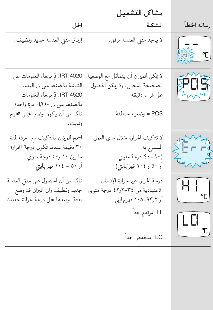 ThermoScan2: 35,8 °C – 38,0 °C 96,4 – 100,4 °F