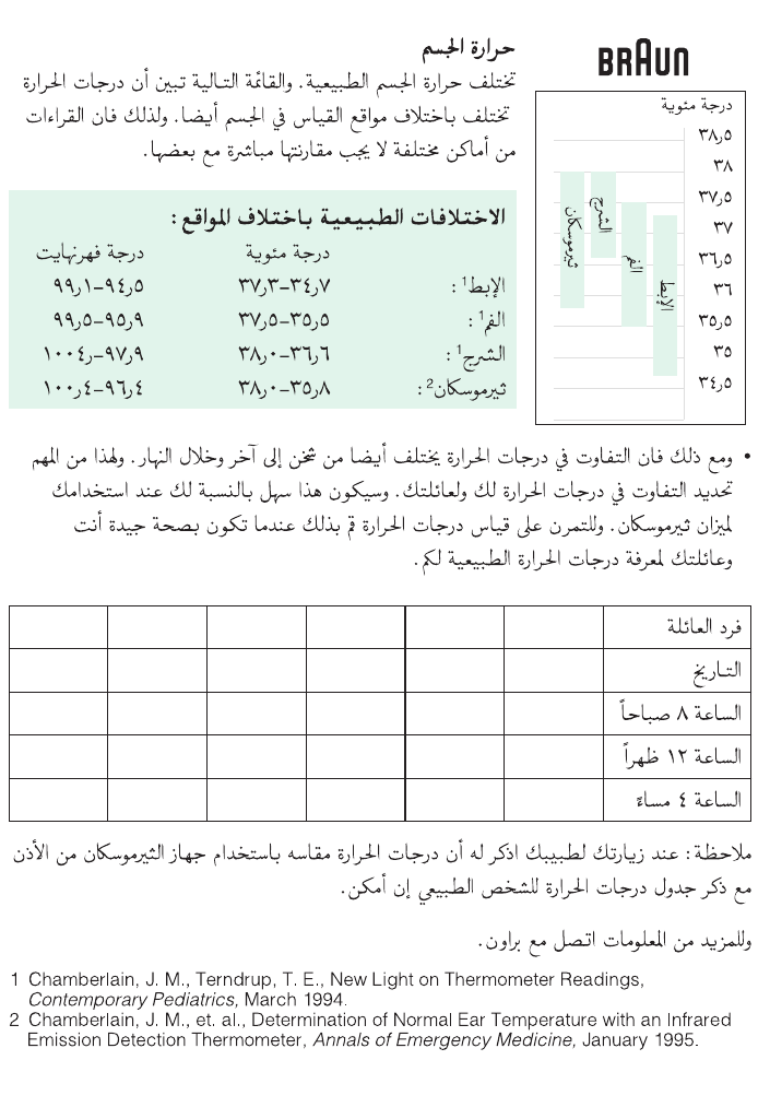 ThermoScan2 : 35,8 °C – 38,0 °C 96,4 – 100,4 °F