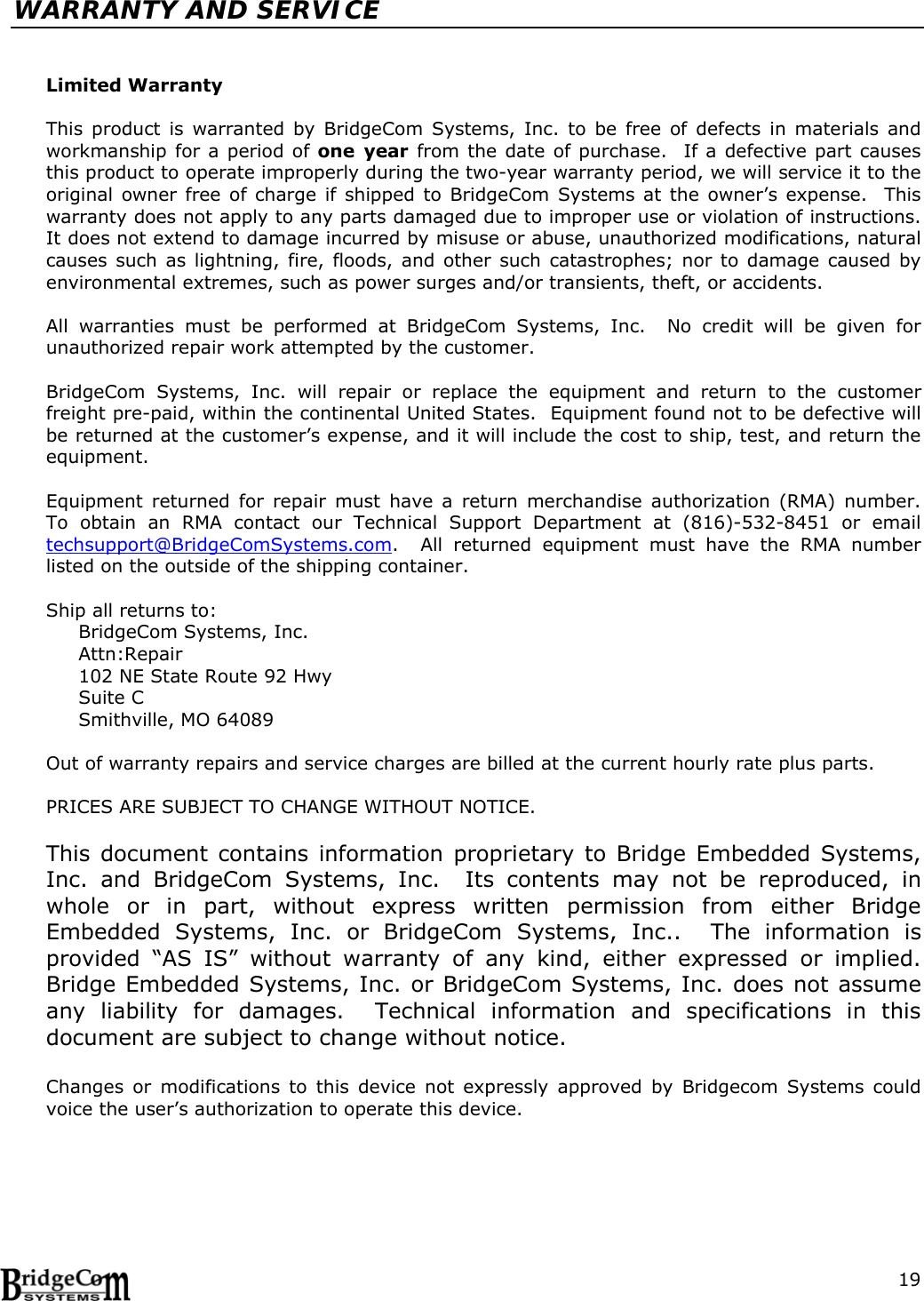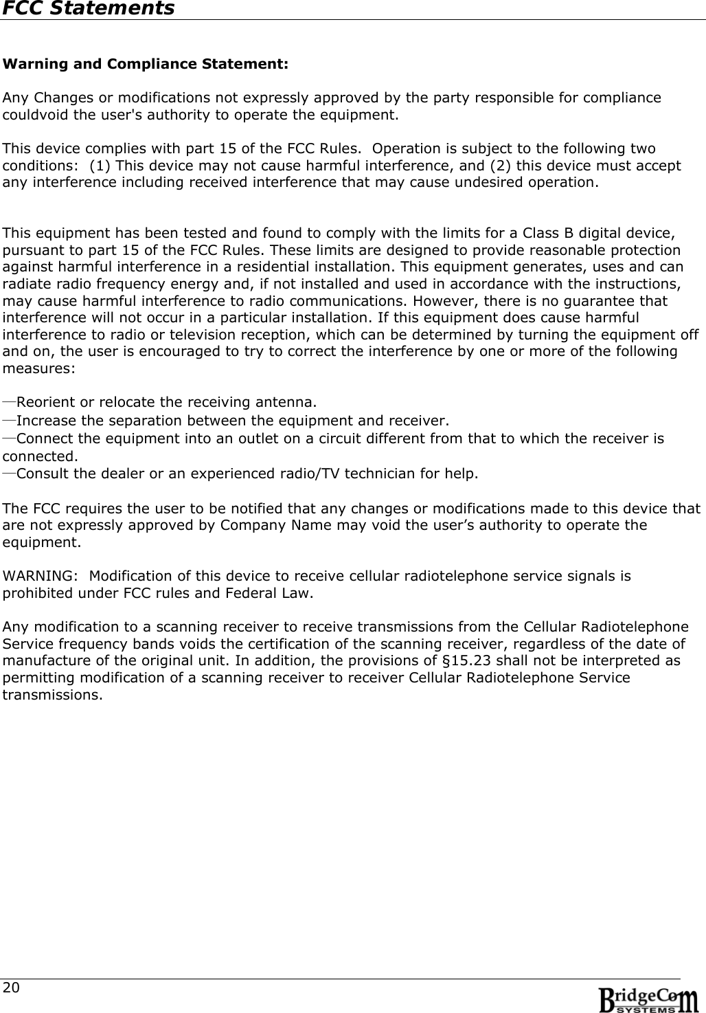 BridgeCom Systems, Inc. Scanning receiver 3 1 5updated