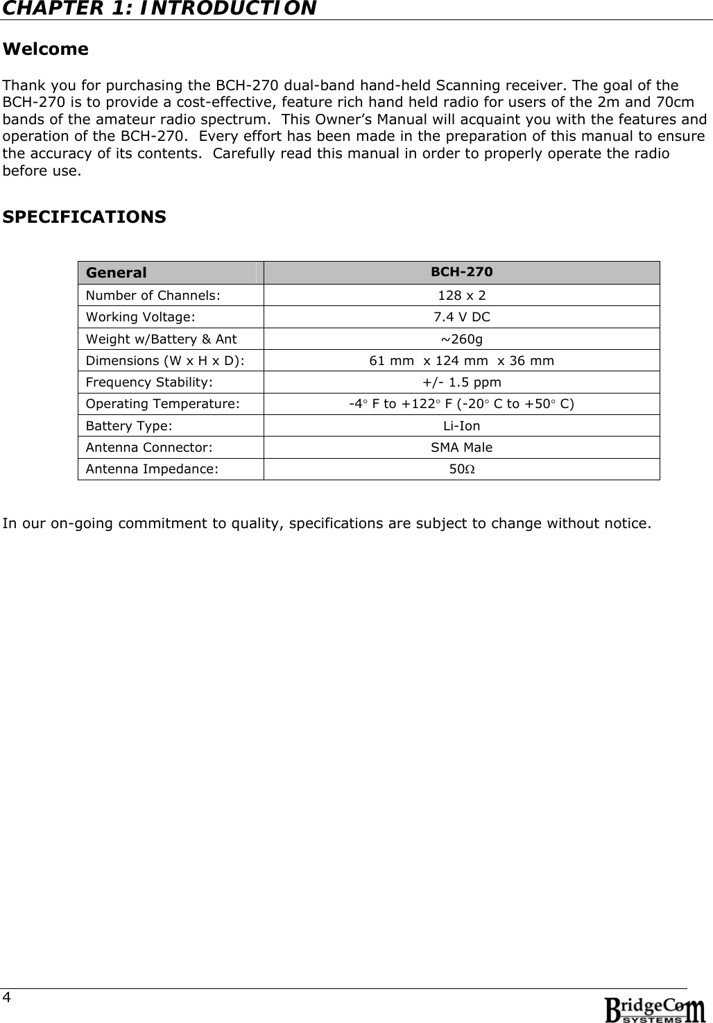 BridgeIP BCH-270 Scanning receiver User Manual 3 1 5updated