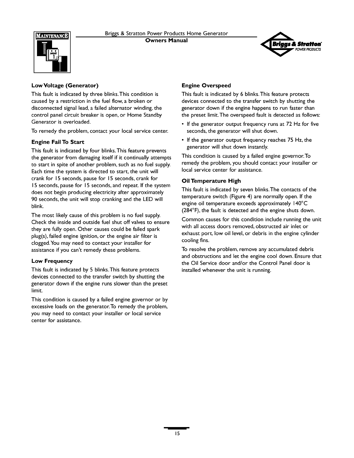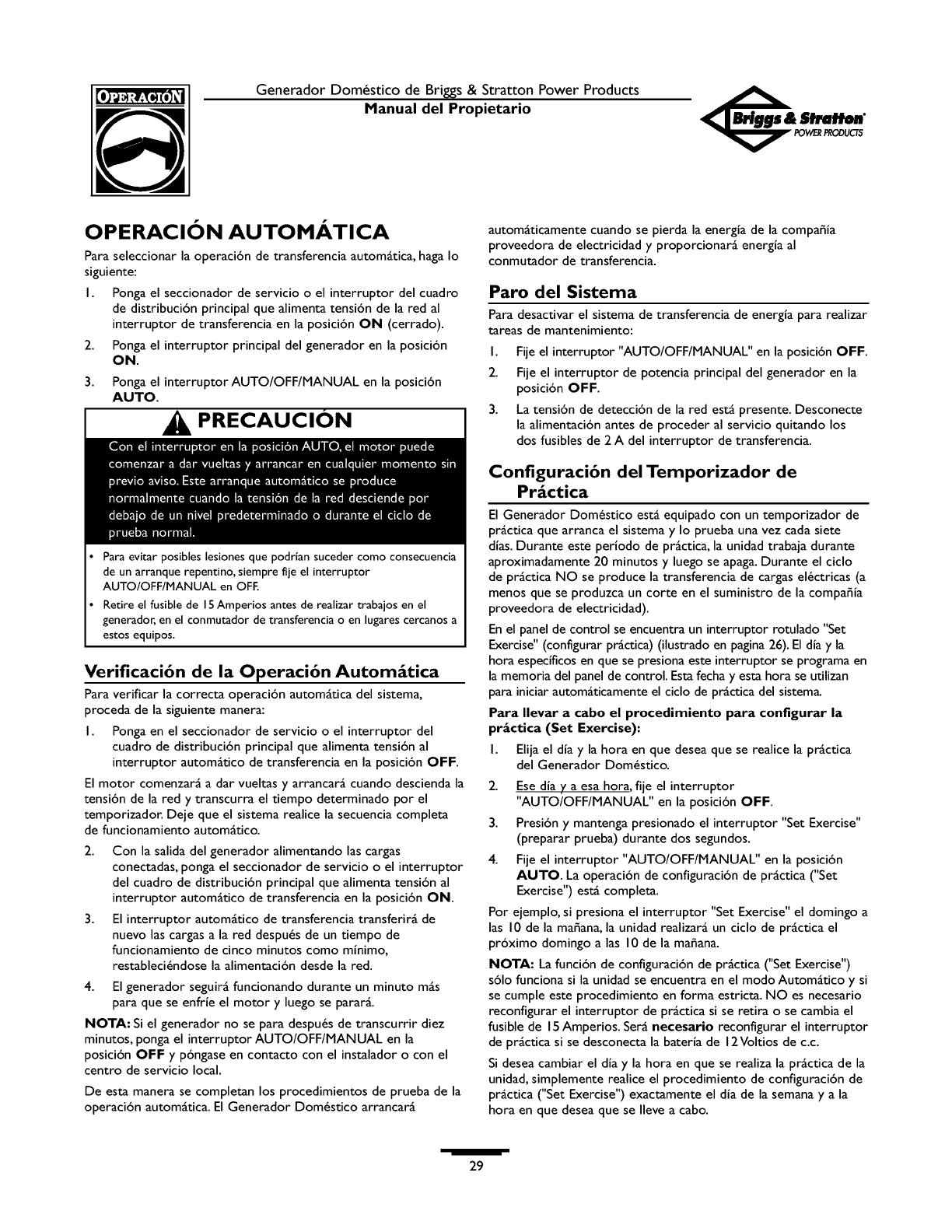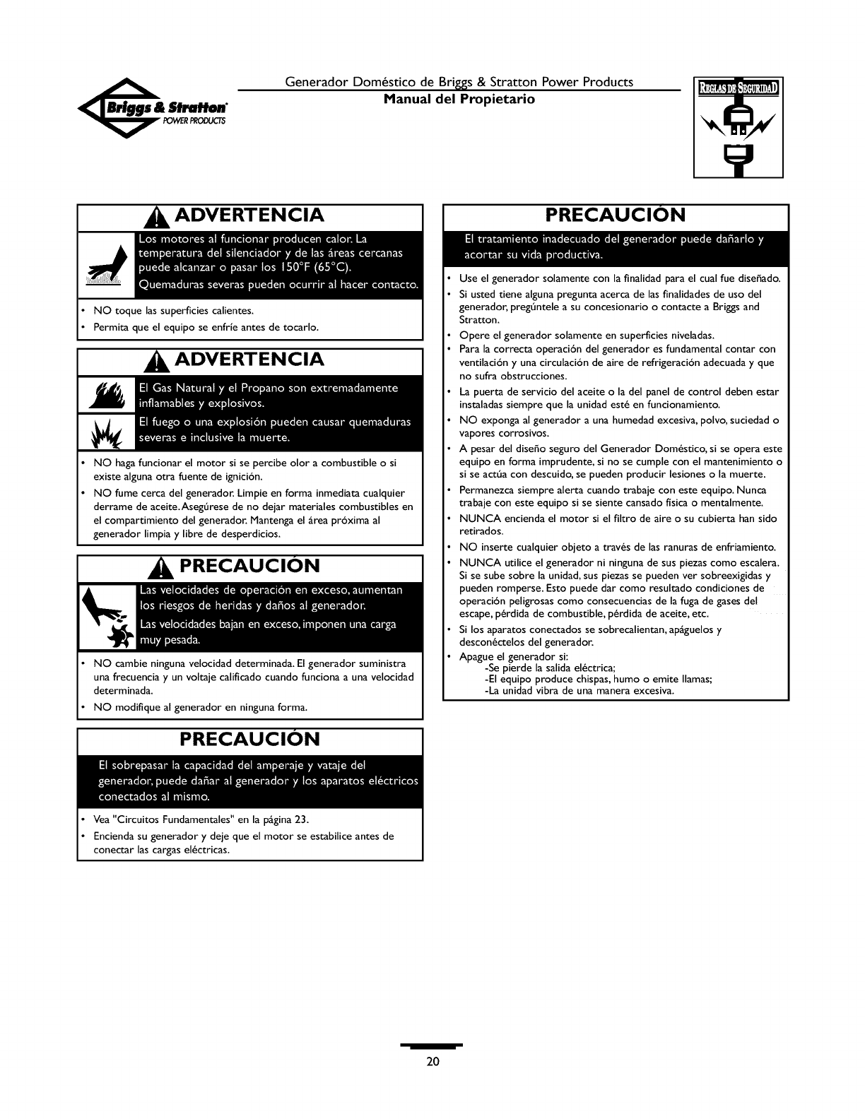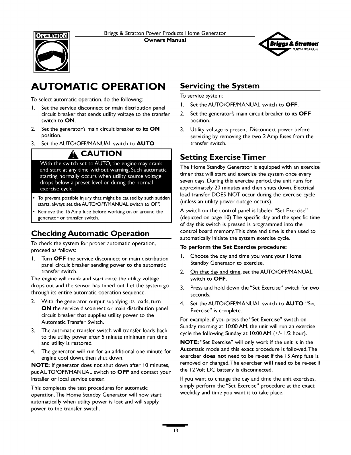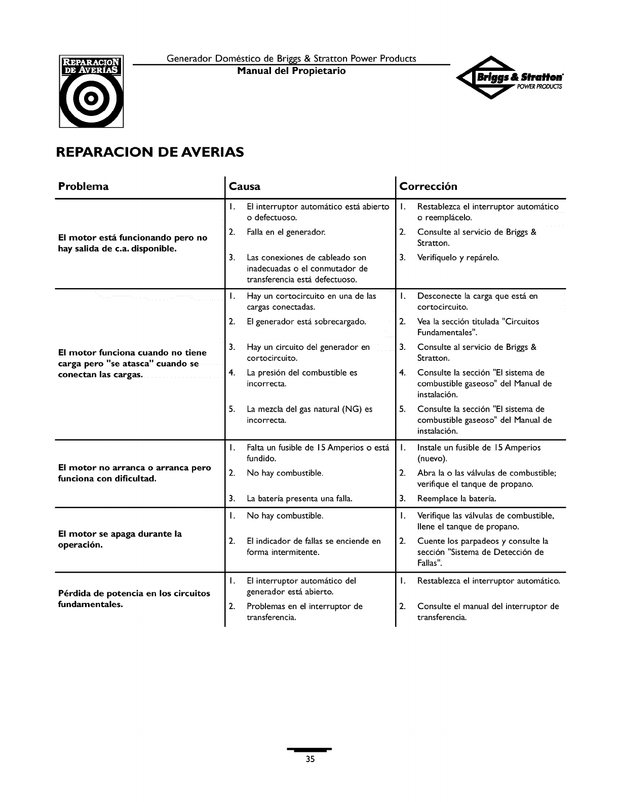 User Manual: Briggs & Stratton 01938-0 01938-0 BRIGGS & STRATTON HOME GENERATOR - Manuals and Guides View the owners manual for your BRIGGS & STRATTON HOME GENERATOR #019380. Home:Tool Parts:Briggs&Stratton Parts:Briggs&Stratton HOME GENERATOR Manual