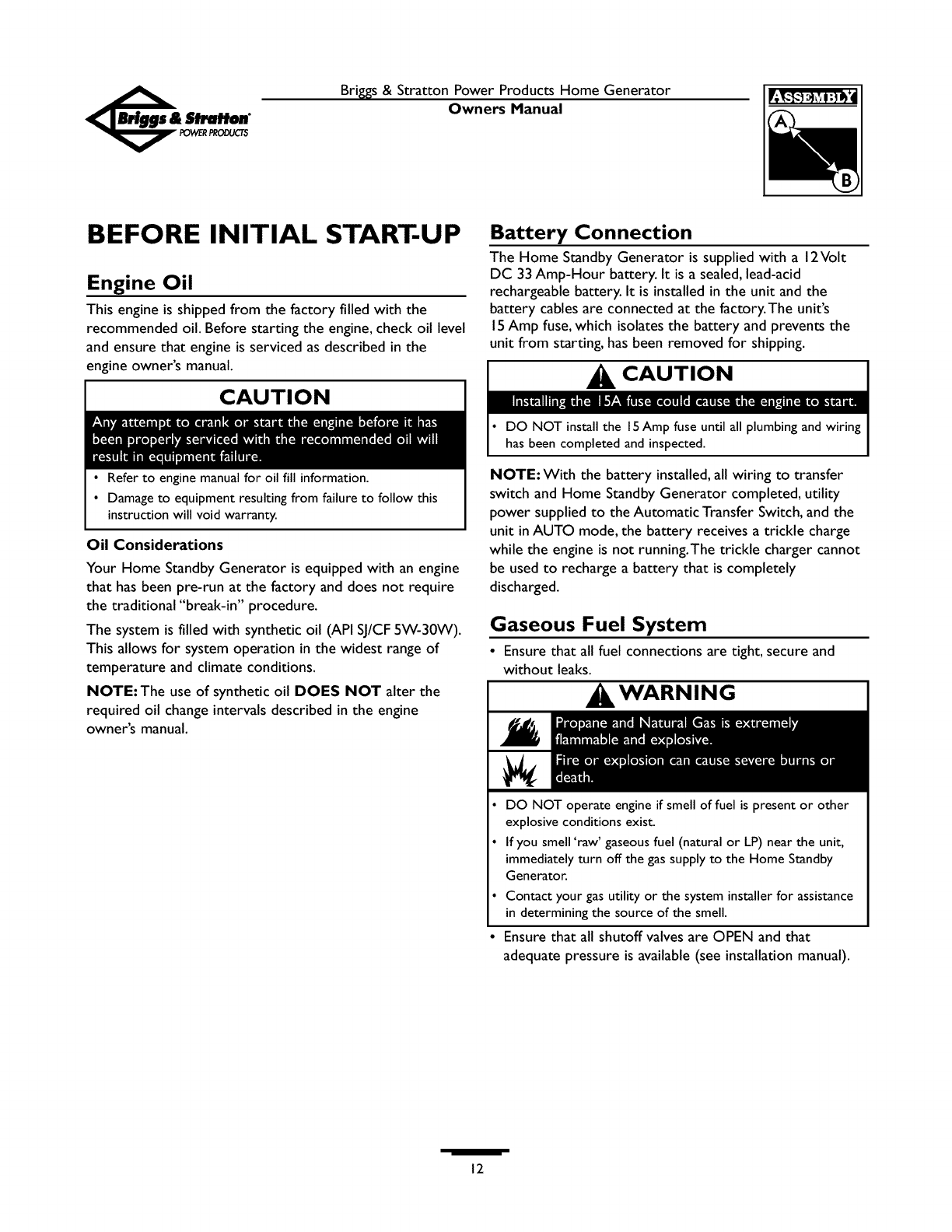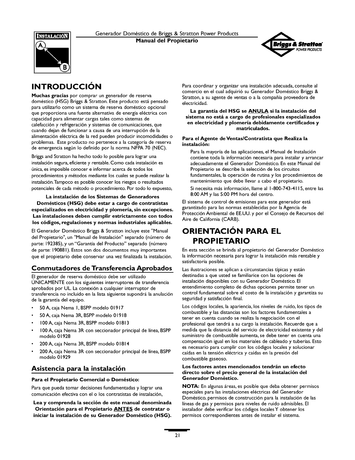 Briggs & Stratton 01938 0 User Manual HOME GENERATOR Manuals And Guides L0402147