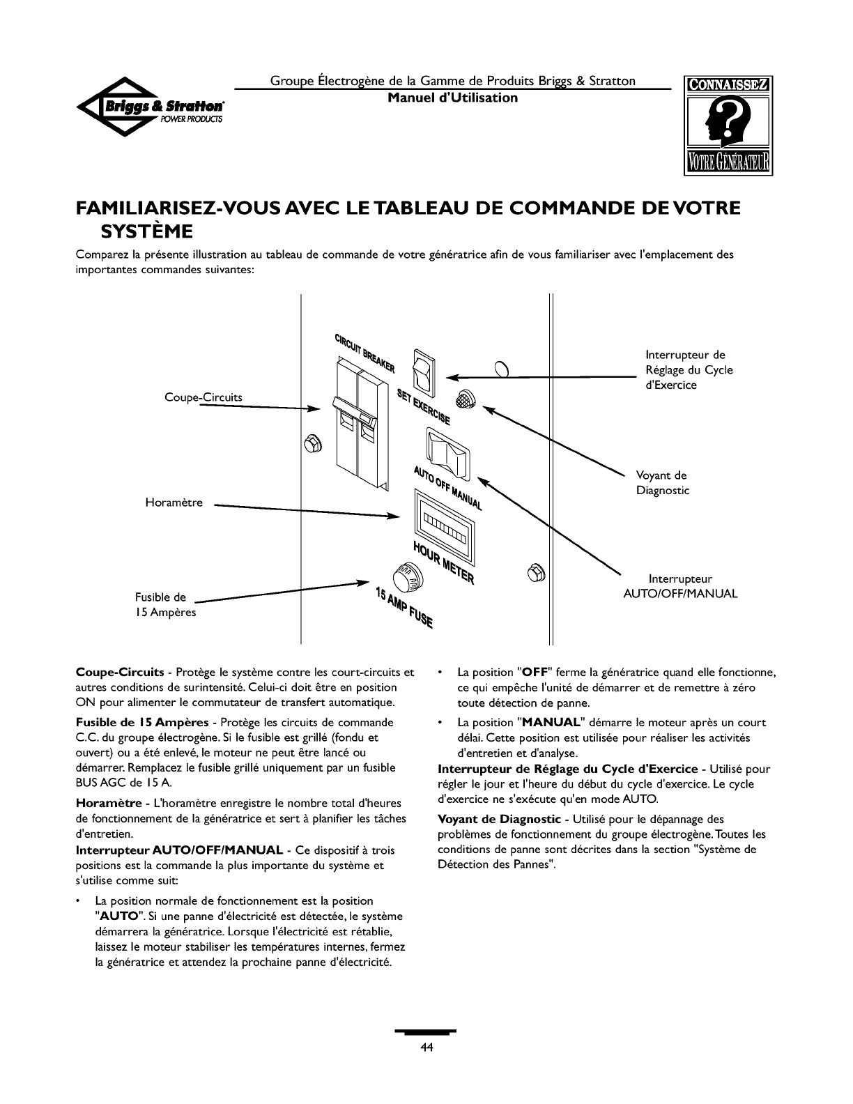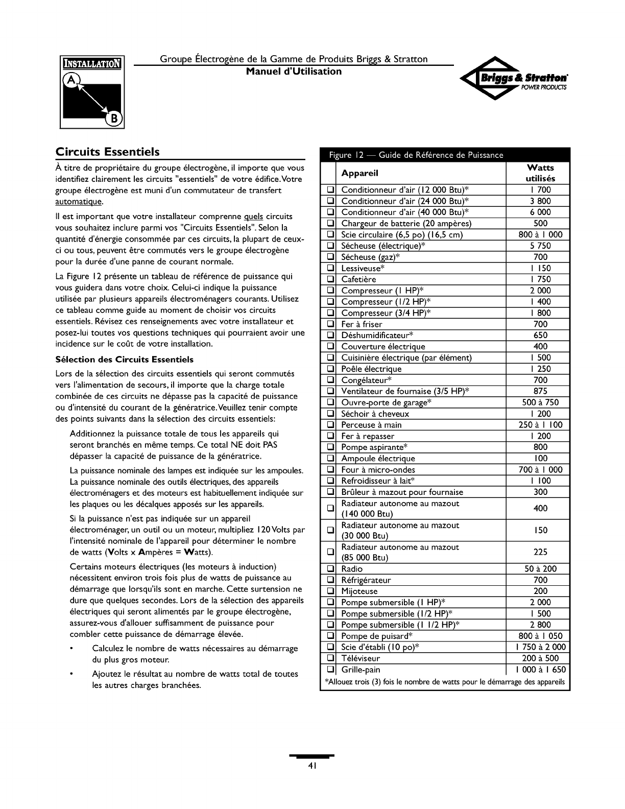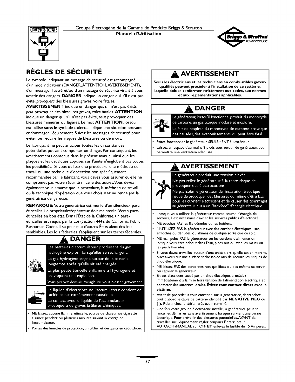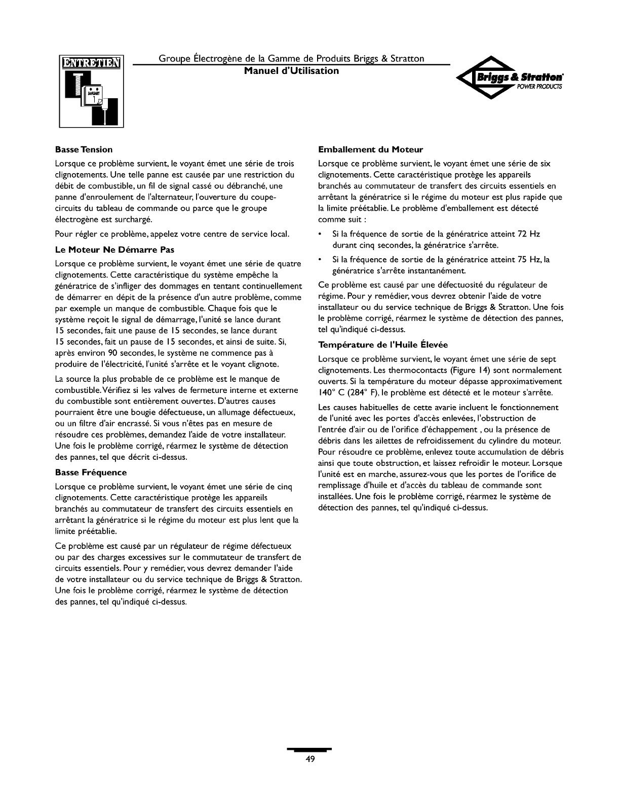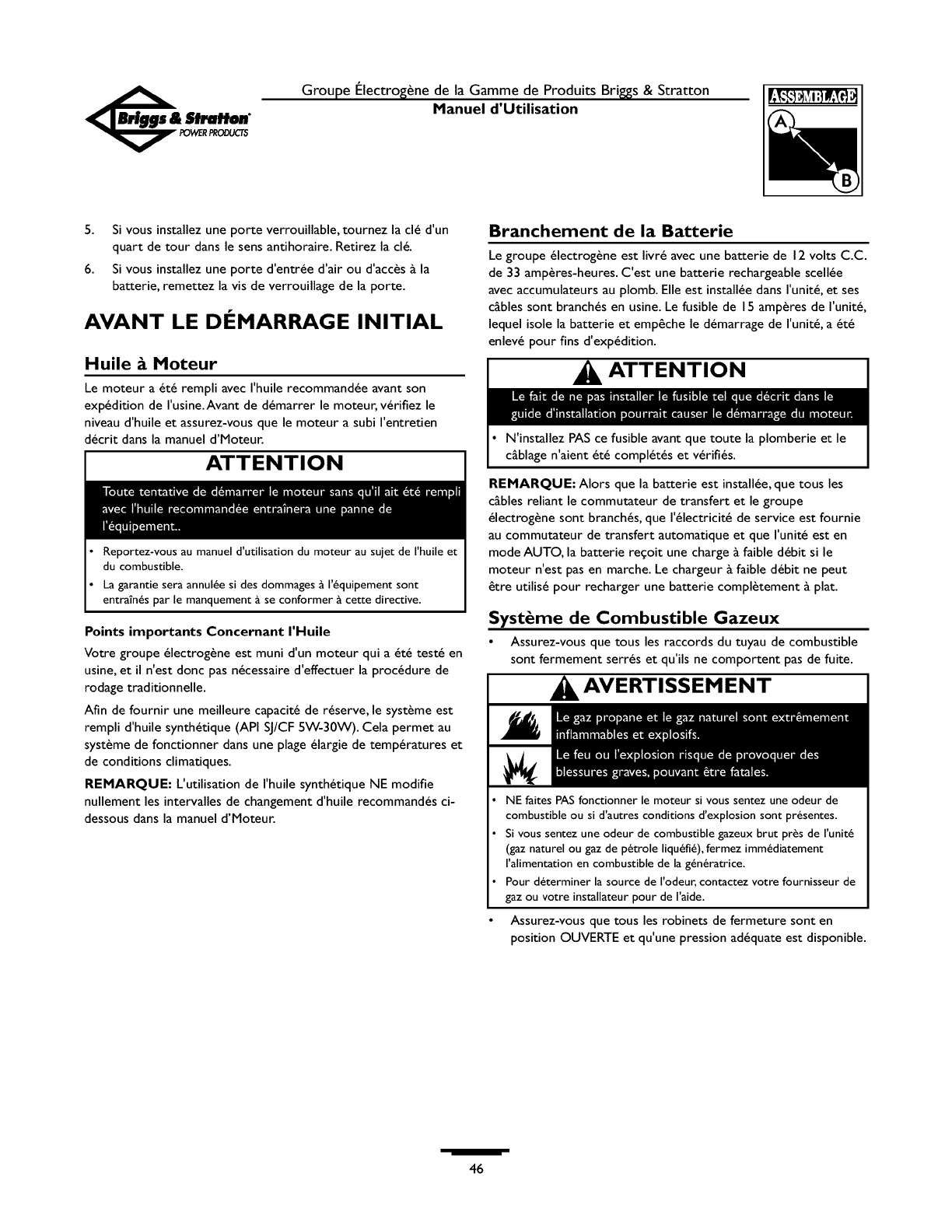 I_lectro_:_ne de la Gamme de Produits Brig, s & StrattonGroupe Manuel d'Utilisation