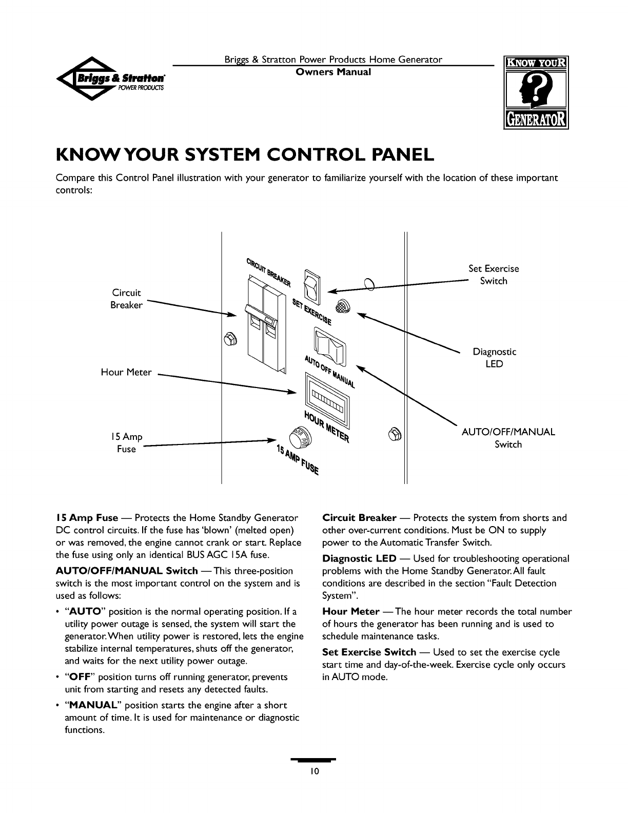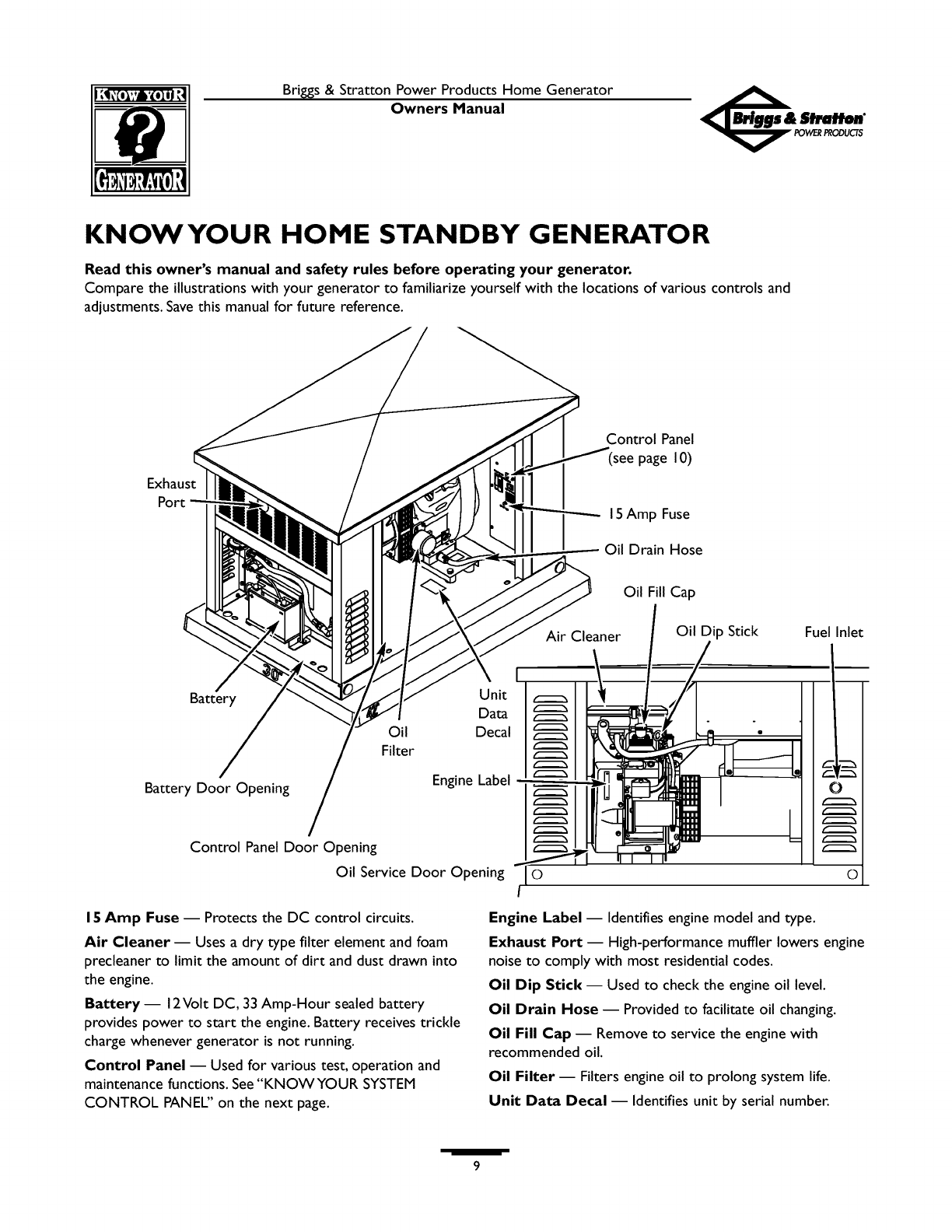 KNOWYOUR HOME STANBY GENERATOR ........ 9