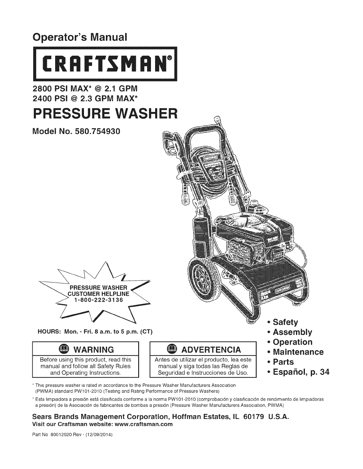 * Thus pressure washer usrated ,n accordance to the Pressure Washer Manufacturers Assocnatnon