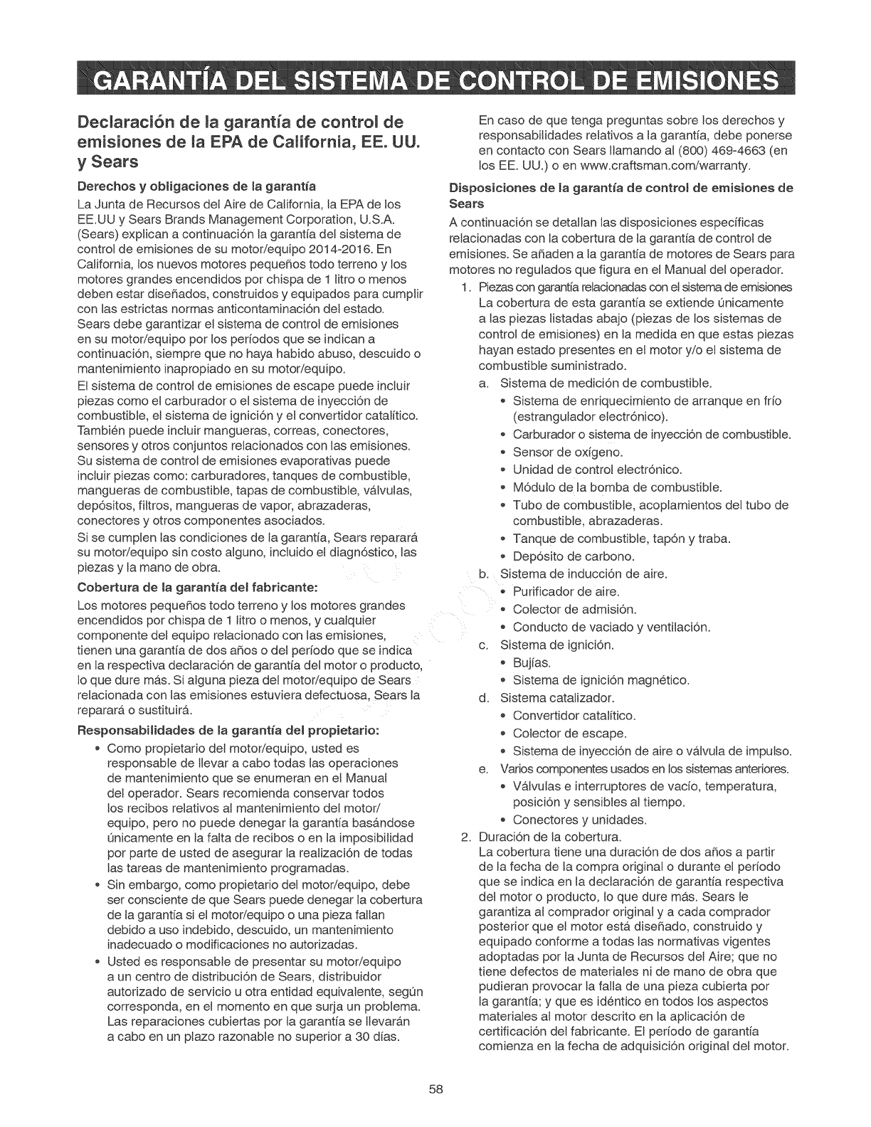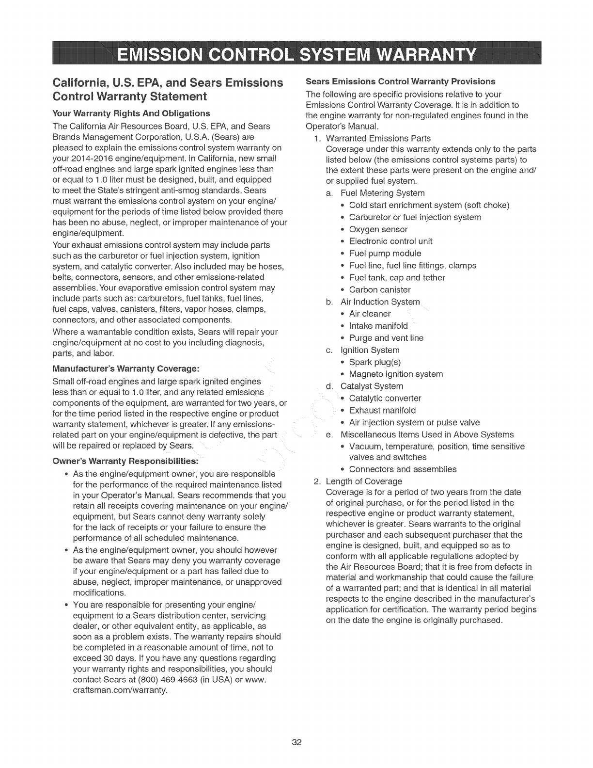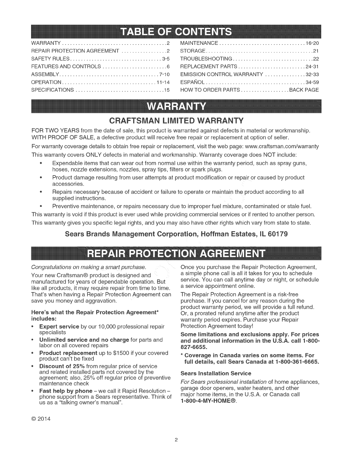 For warranty coverage details to obtain free repair or replacement, visit the web page: wwv.craftsman.comiwarranty