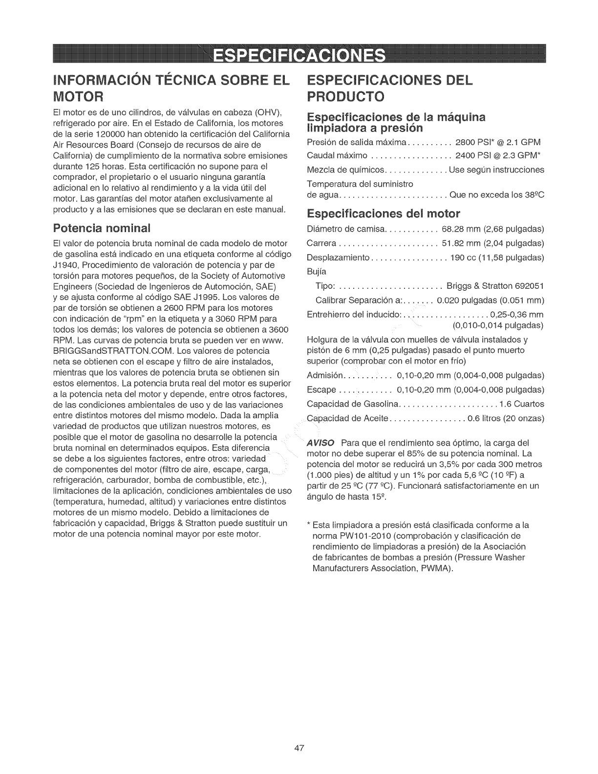 a presn6n) de HaAsocnacn6n de fabrncantes de bombas a presn6n (Pressure Washer Manufacturers Assocnatnon, PWMA)