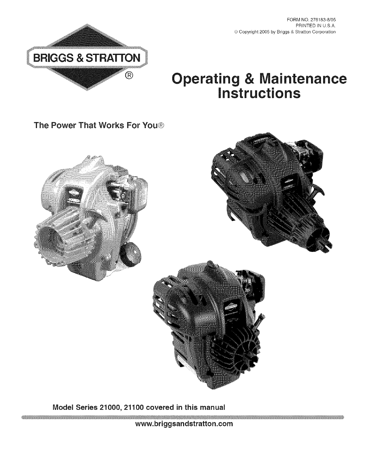 User Manual: Briggs & Stratton 021032-0562-E1 021032-0562-E1 BRIGGS & STRATTON GAS ENGINE - Manuals and Guides View the owners manual for your BRIGGS & STRATTON GAS ENGINE #0210320562E1. Home:Lawn & Garden Parts:Briggs&Stratton Parts:Briggs&Stratton GAS ENGINE Manual