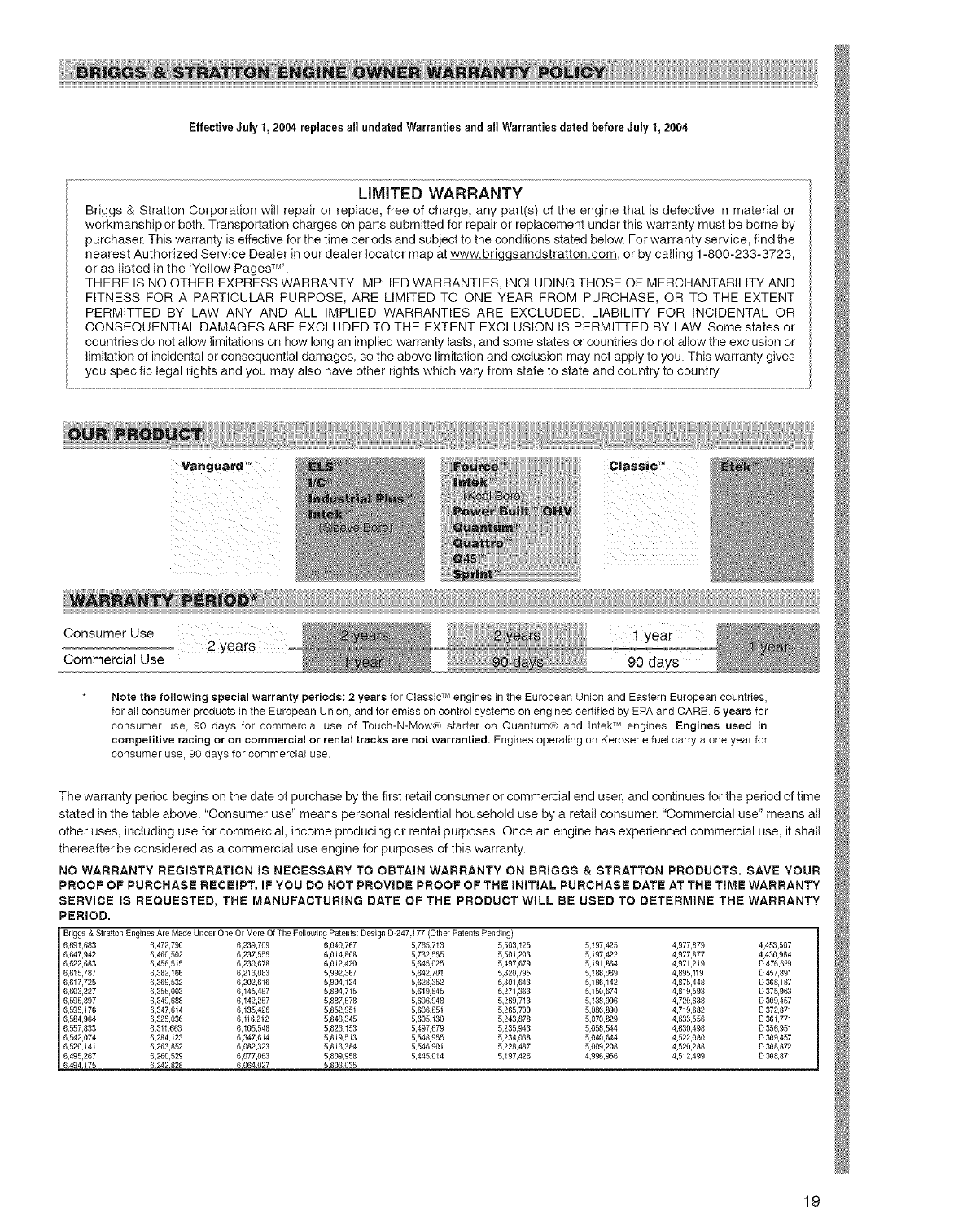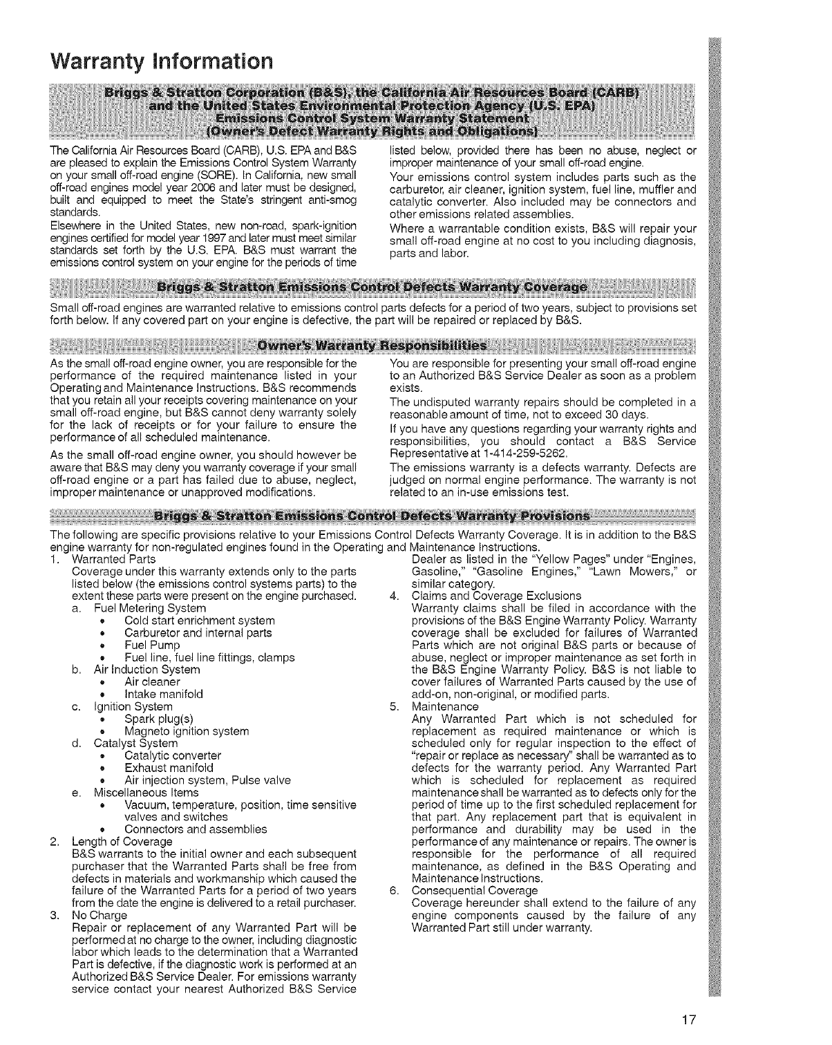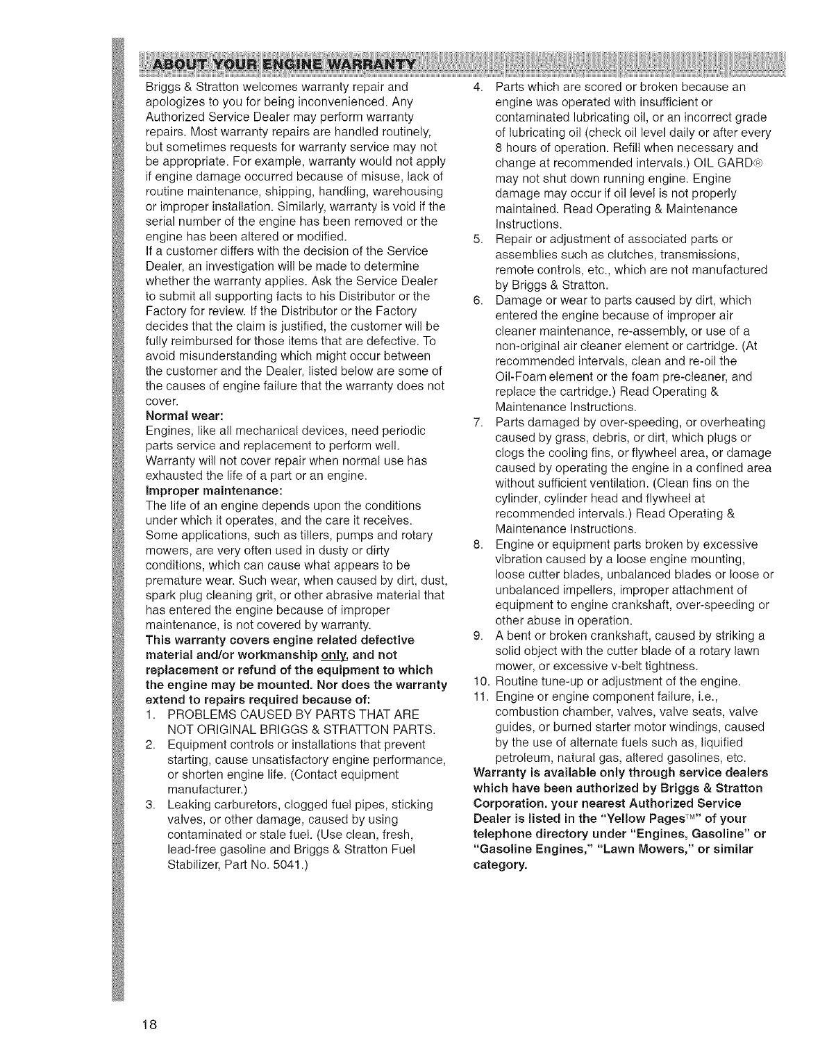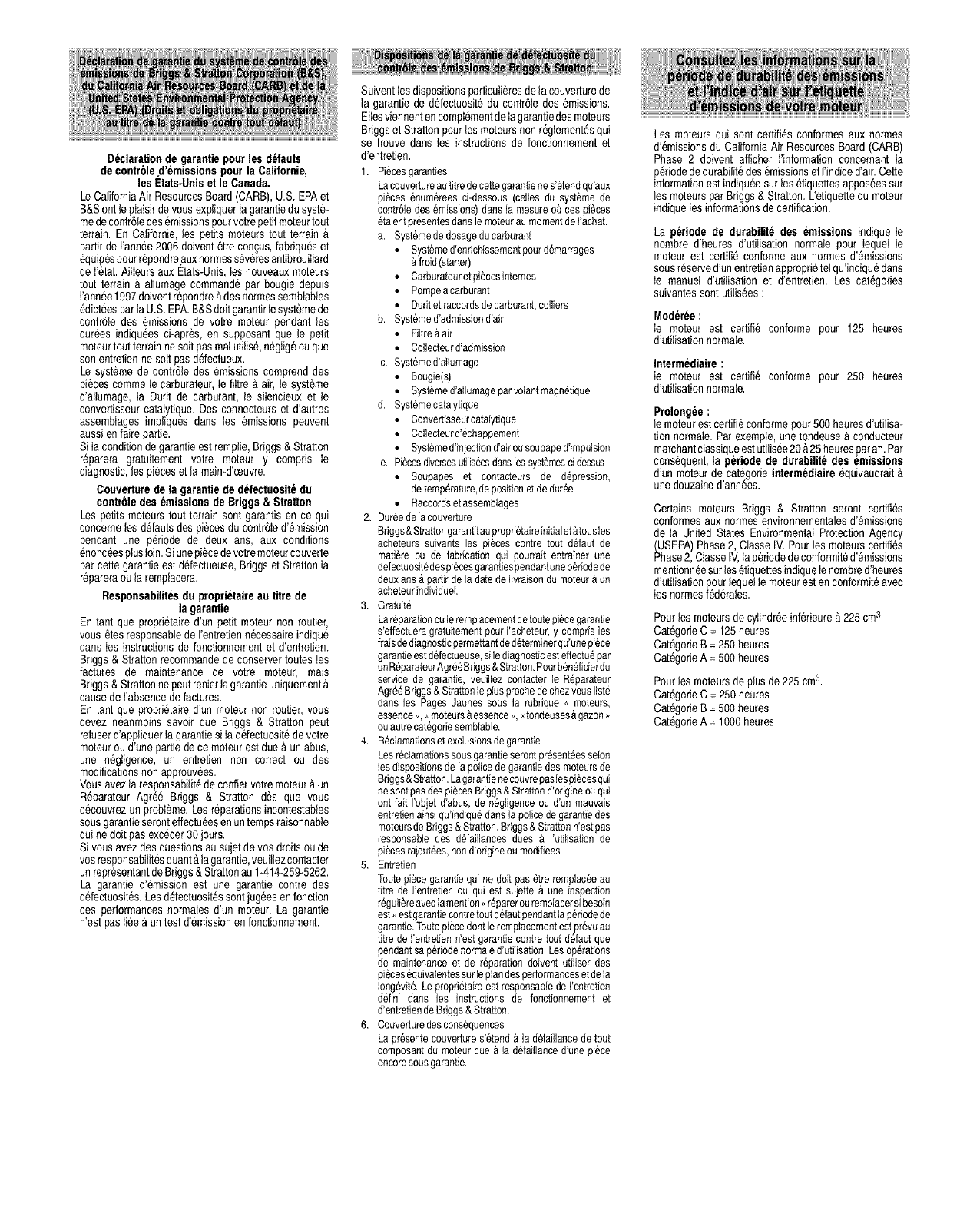 Bdggs&Stratton. La garantie ne couvre paslespi6cesqui