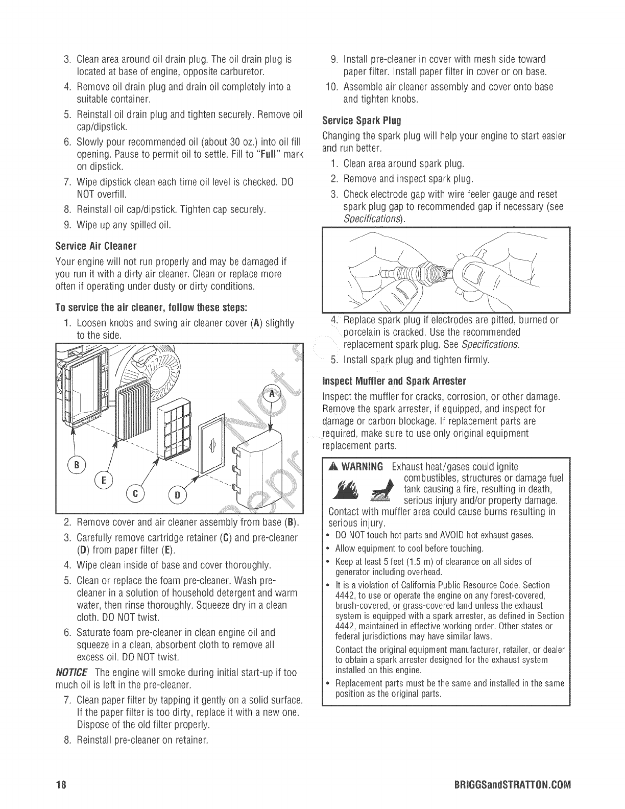 Briggs & Stratton Customer Serviceby phone at (800) 743-4115, or on the Internet at BRiGGSandSTRATTON.CONL