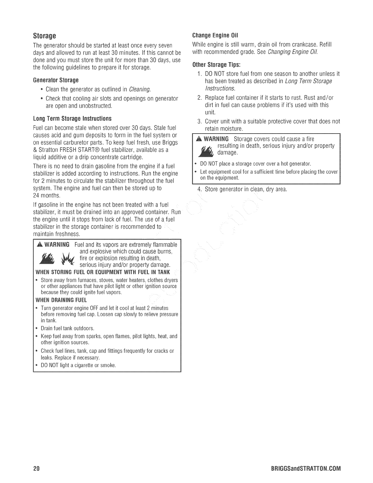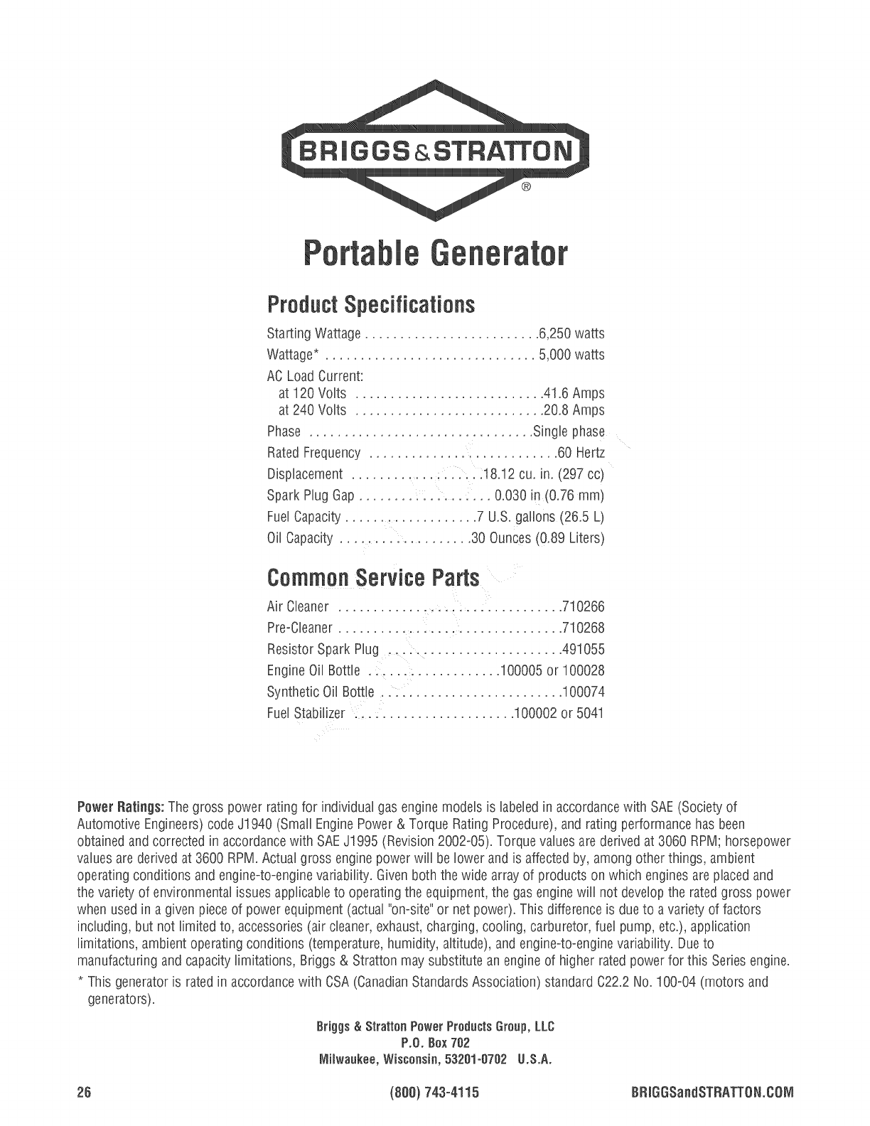 Briggs & Stratton 030422 0 User Manual GENERATOR Manuals And Guides 1109805L