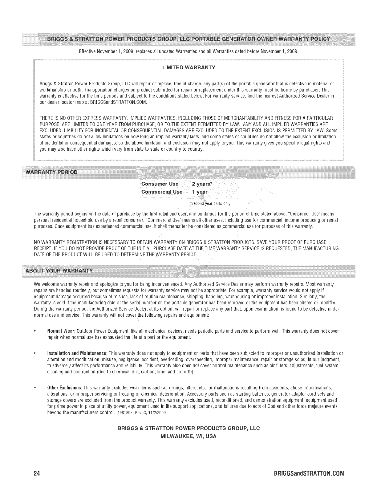 Copyright © 2010. Briggs & Stratton Power Products Group, LLC