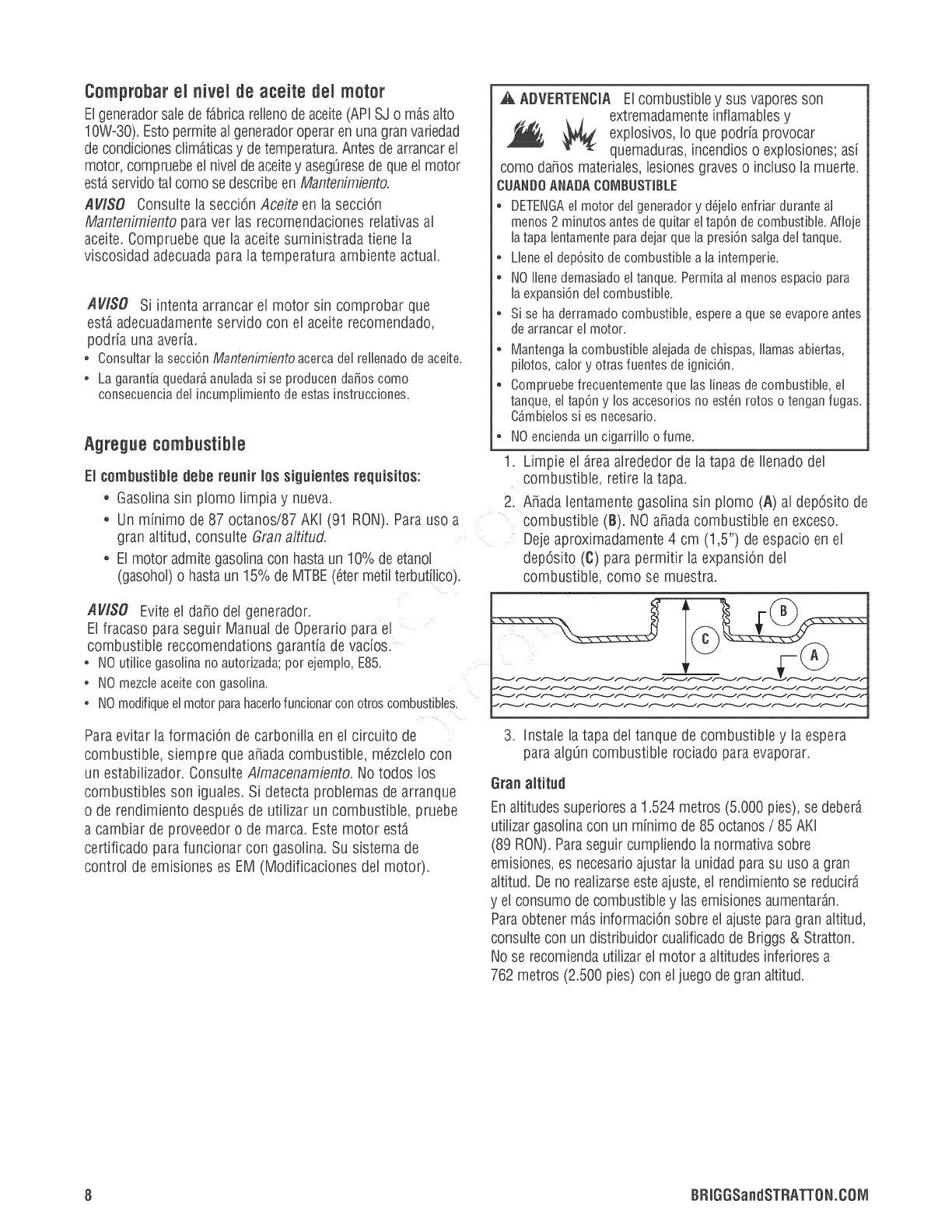 entre distintos motores de un mismo modelo. Briggs & Stratton podrA sustituir el motor de esta serie por otro de mayor potencia nominal