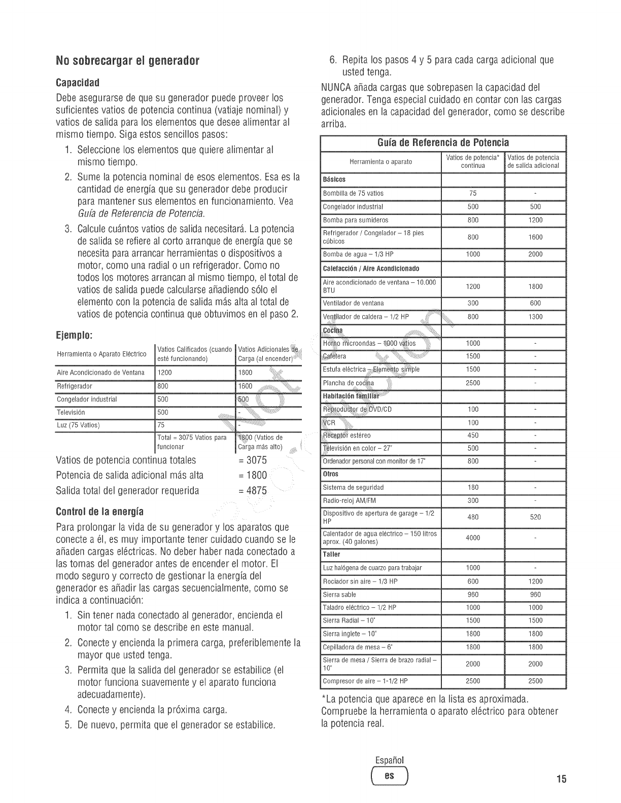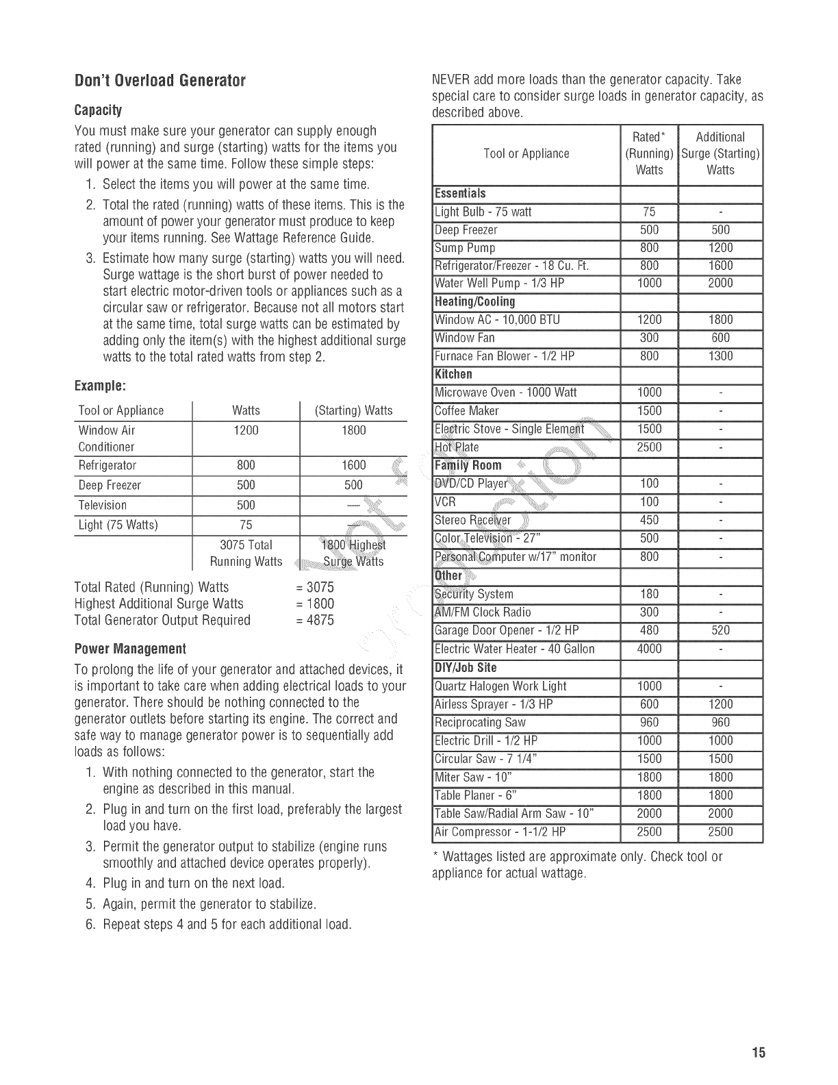 . DONOTexceedthe generator'swattage/amperagecapacity.See