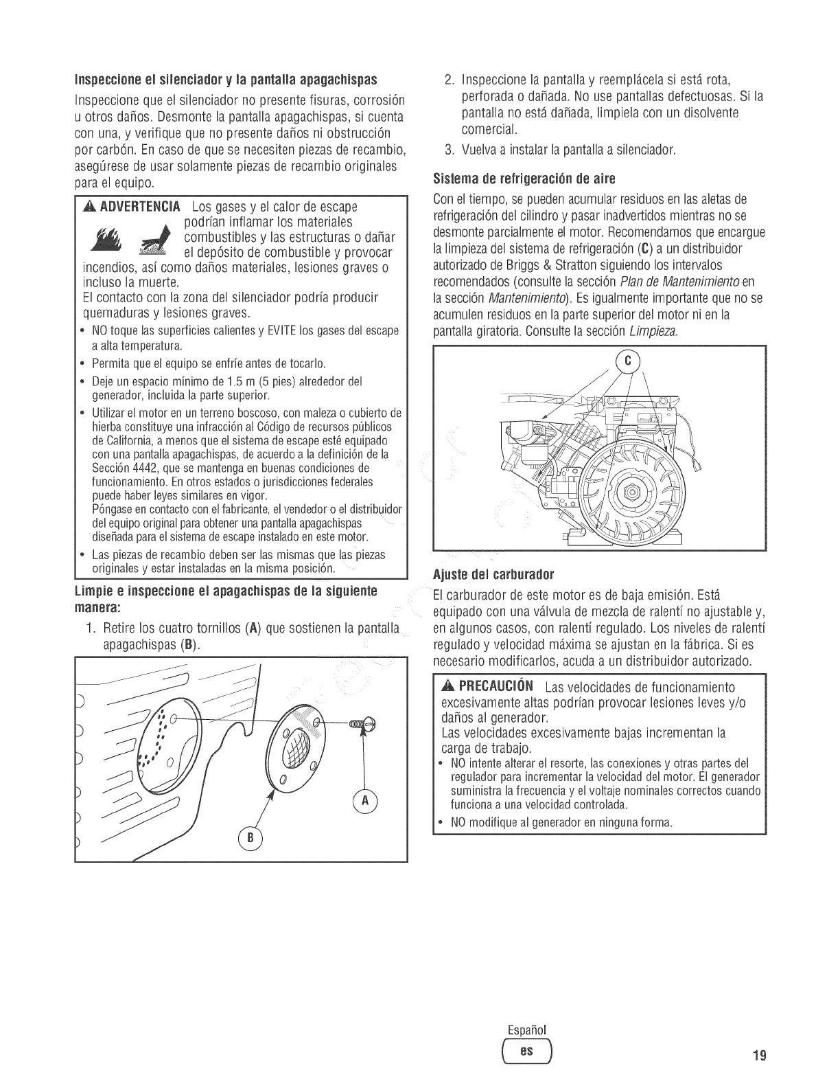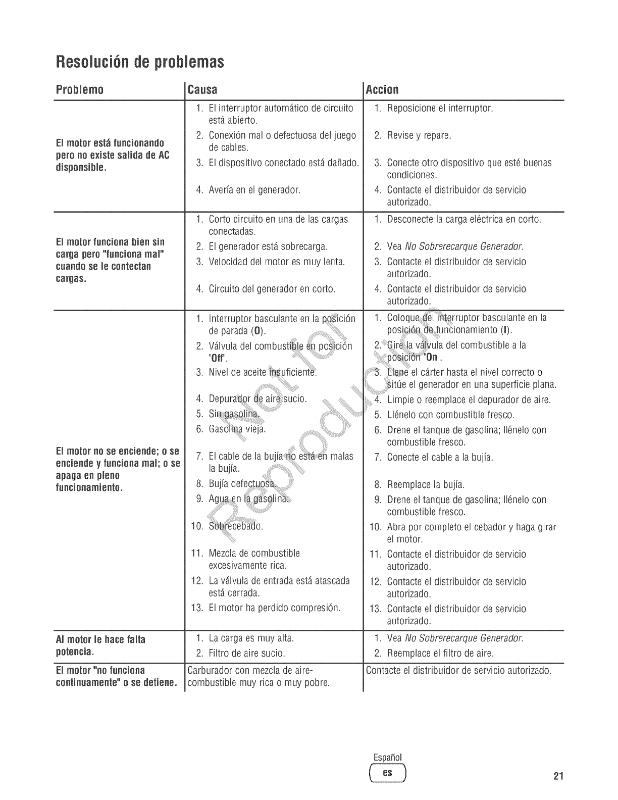 mantenimiento normal, como los filtres de aire, los ajustes y la limpieza 0 la obstrucciOn del sistema de combustion (debido a materias quimicas,
