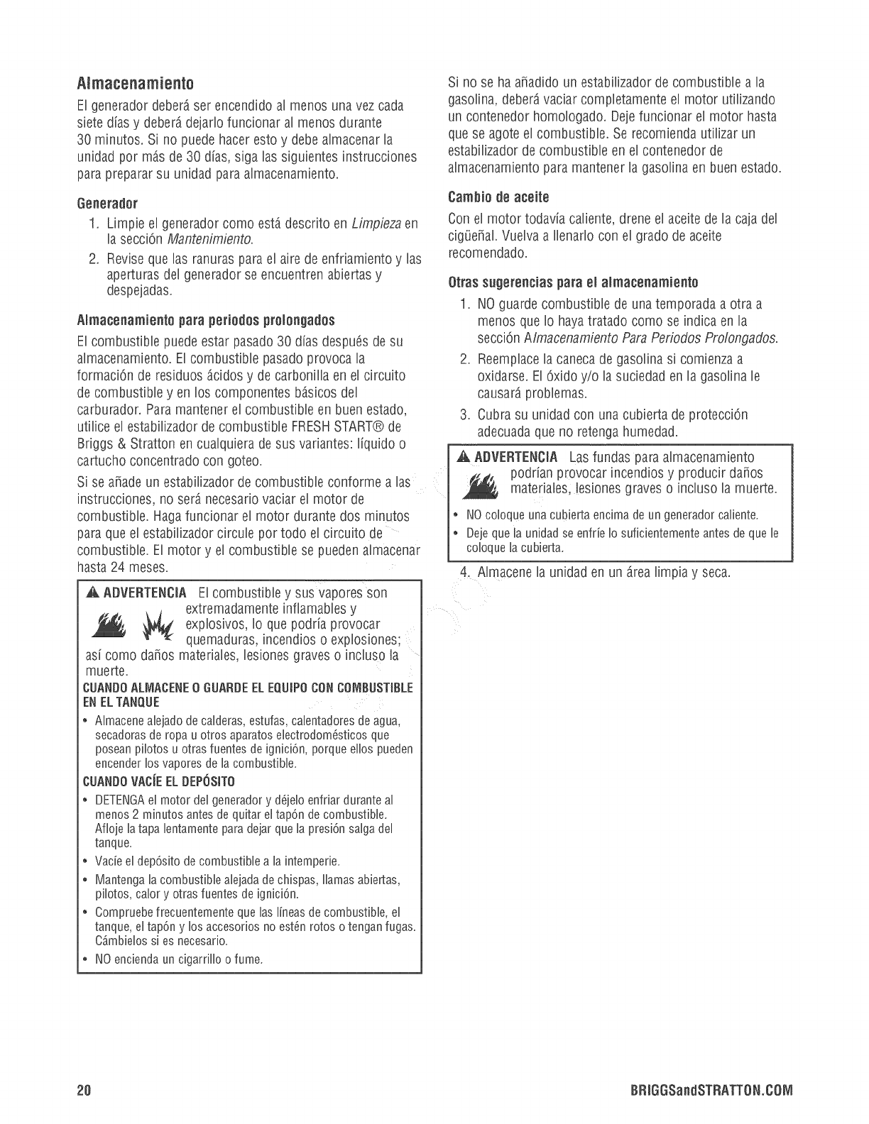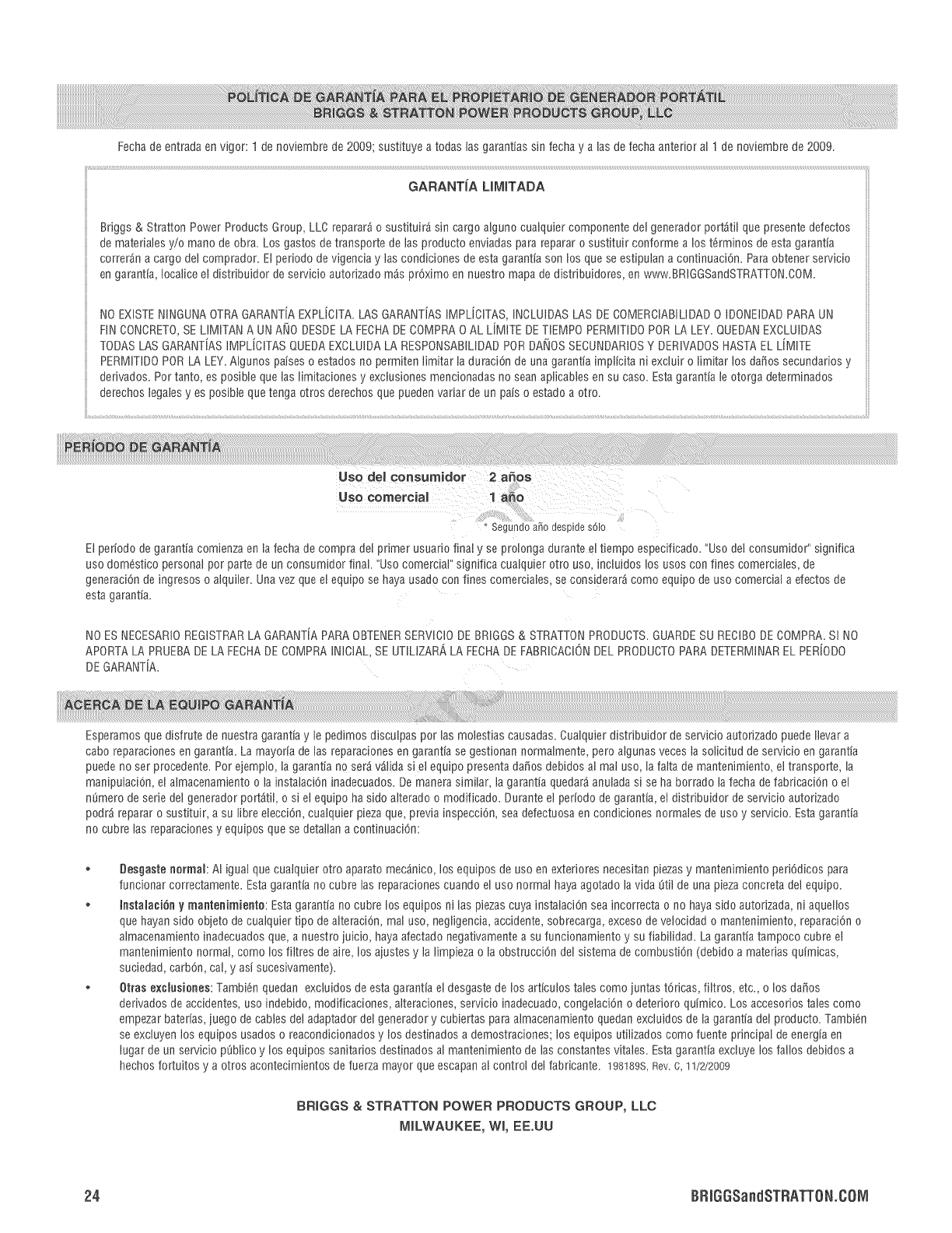 Briggs & Stratton Power Products Group, LLC repararAo sustituir_ sin cargo alguno cualquier componente del generador port_til que presente defectos