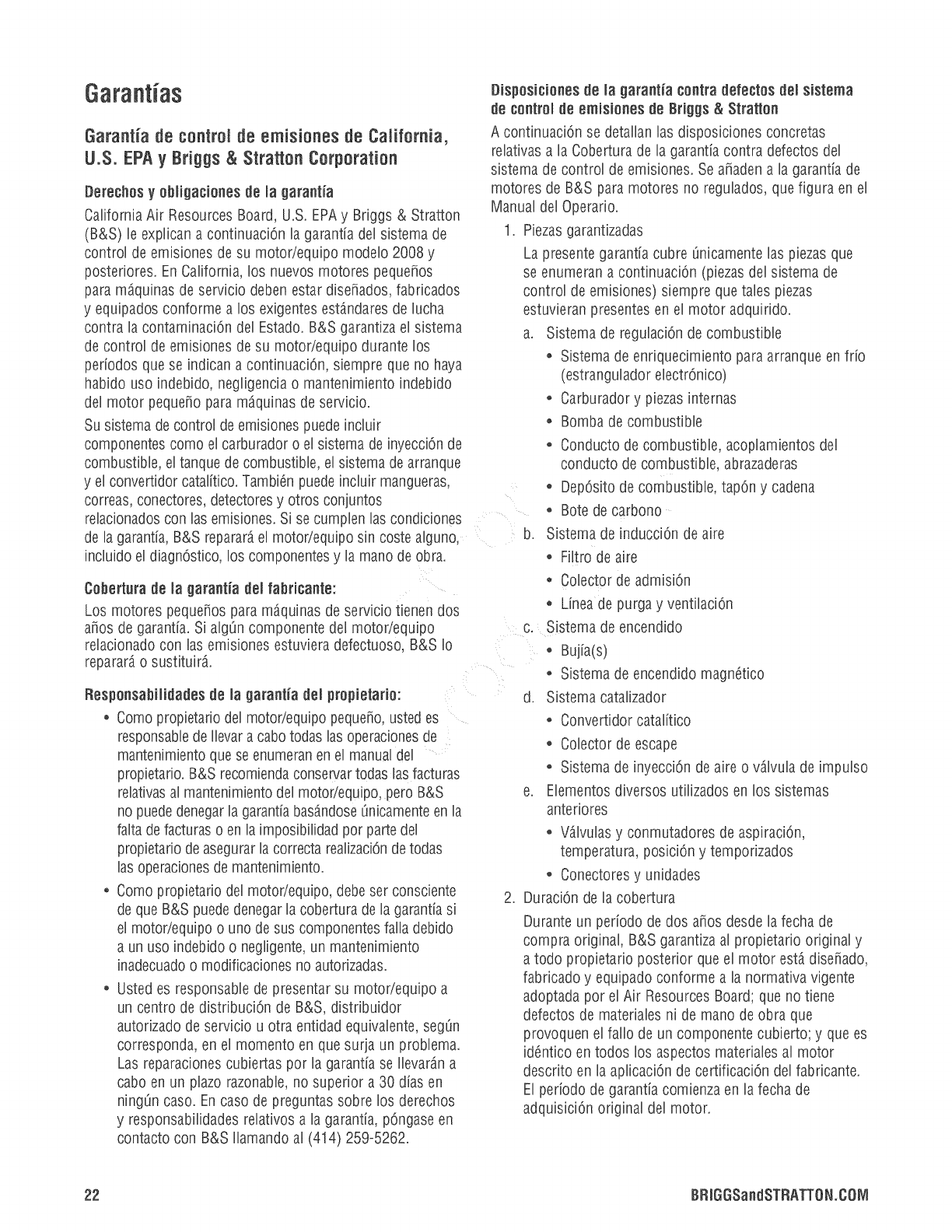 en garantia, Iocalice el distribuidor de servicio autorizado m_s proximo en nuestro mapa dedistribuidores, en www.BRIGGSandSTRATTON.COM.