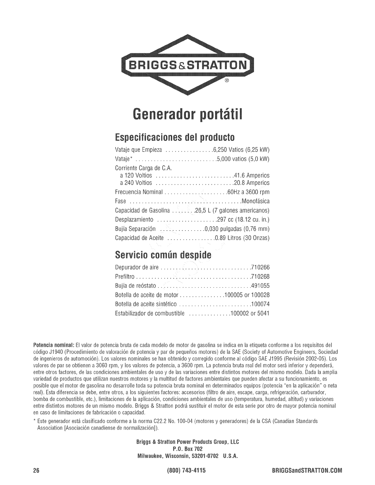 26 (800) 743-4115 BRIGGSandSTRATTON.COM
