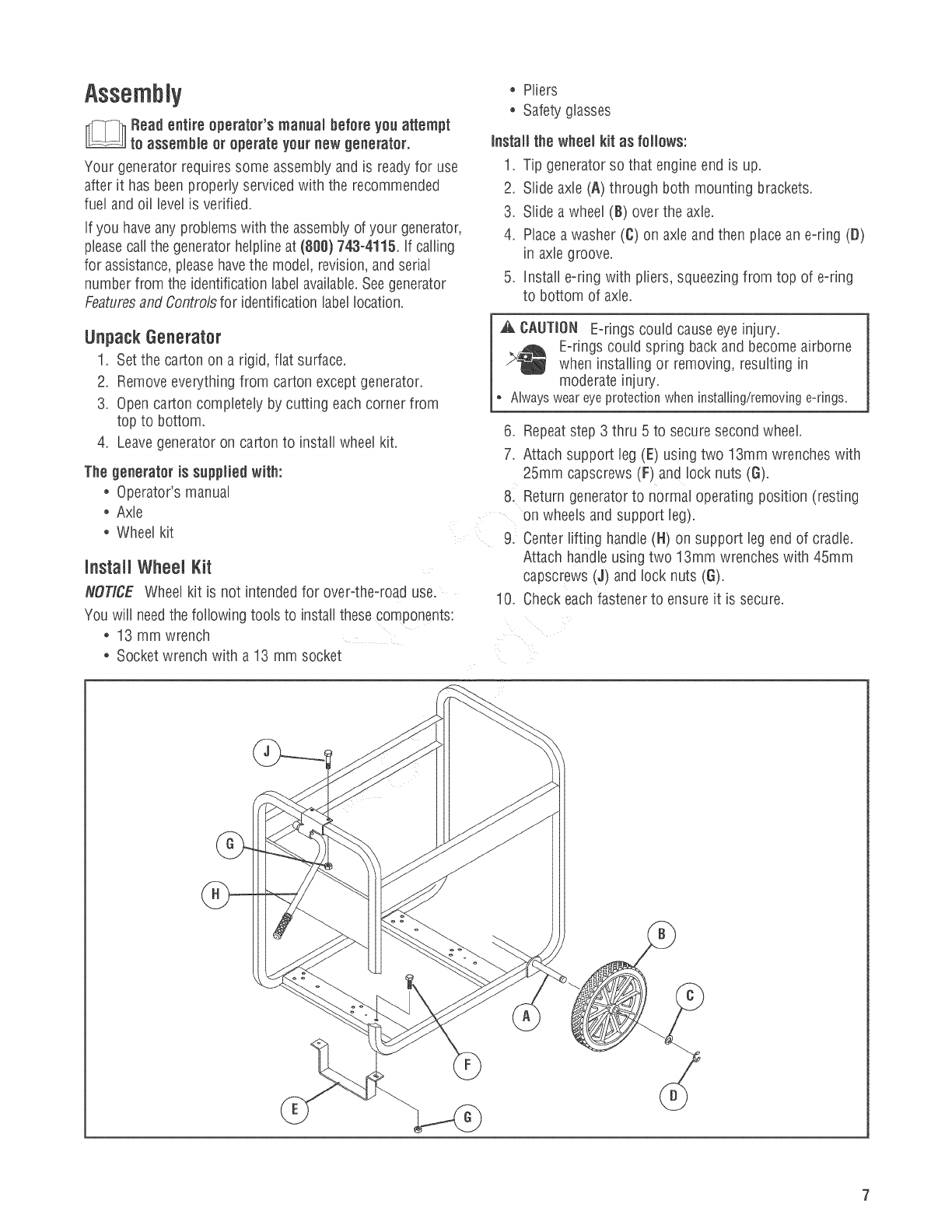 This generator requires final assembly befare use. Referto the Assembly section of this manual for instructions on final