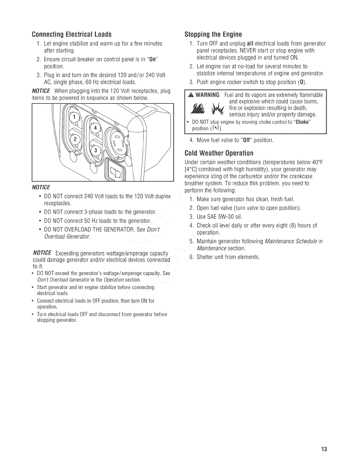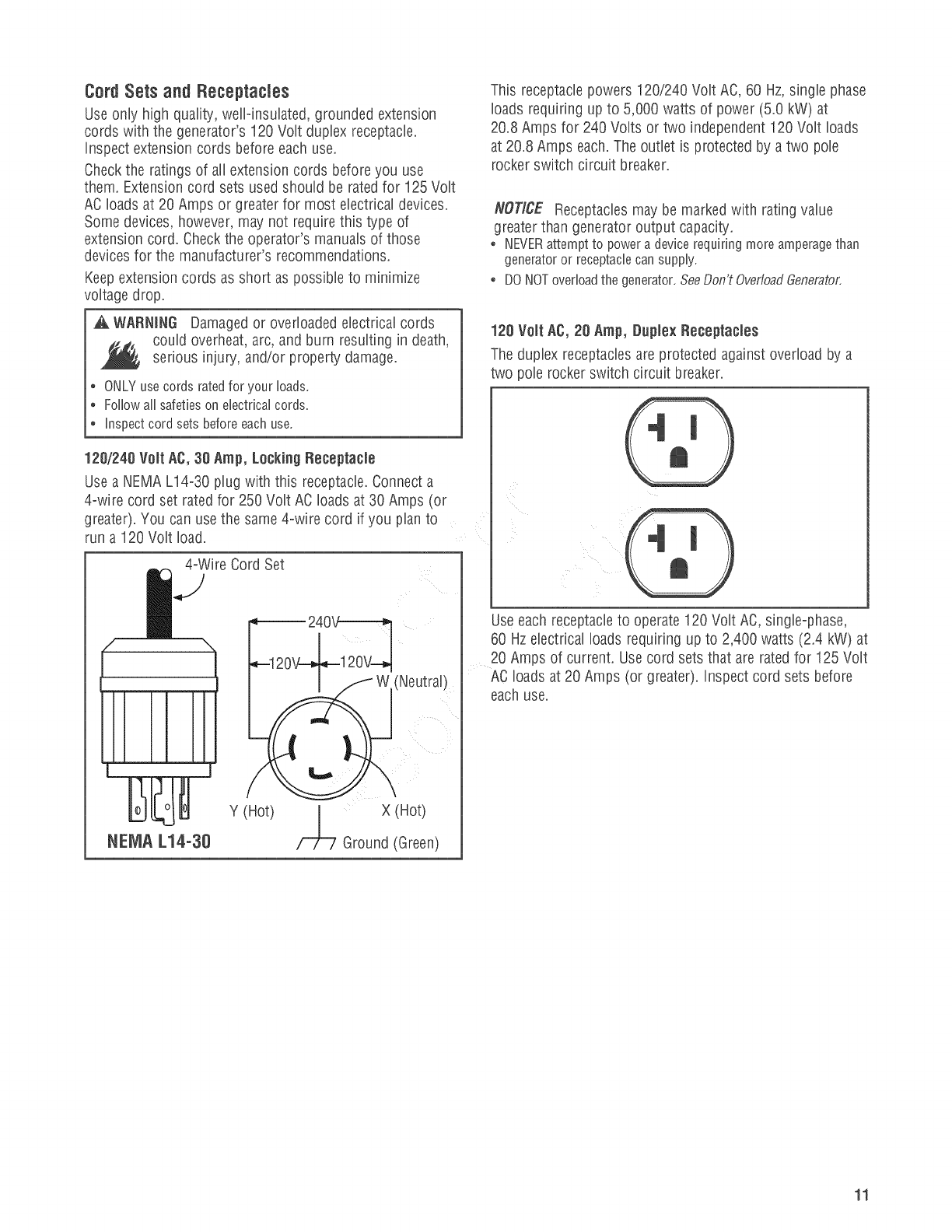 NOTICE Exceedinggeneratorswattage/amperagecapacity